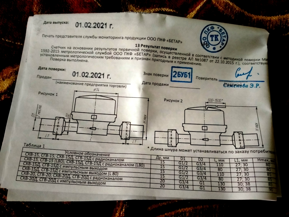 Счетчик воды СГВ-20 МЗ "Бетар"
