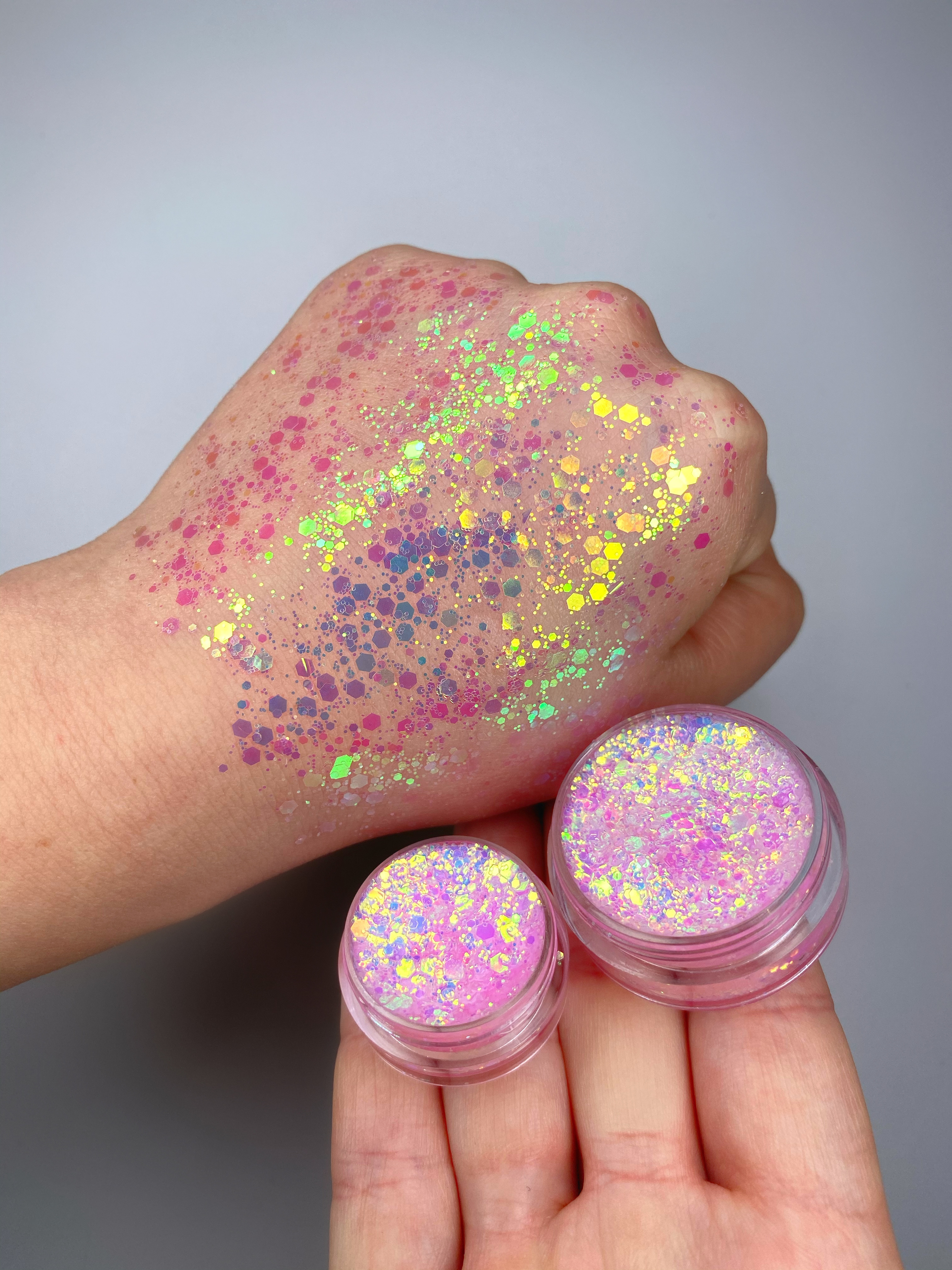 Глиттер Гель мелкодисперсный для лица и тела. Блестки для глаз. Хайлайтер BIBO #102 NEON DEMON