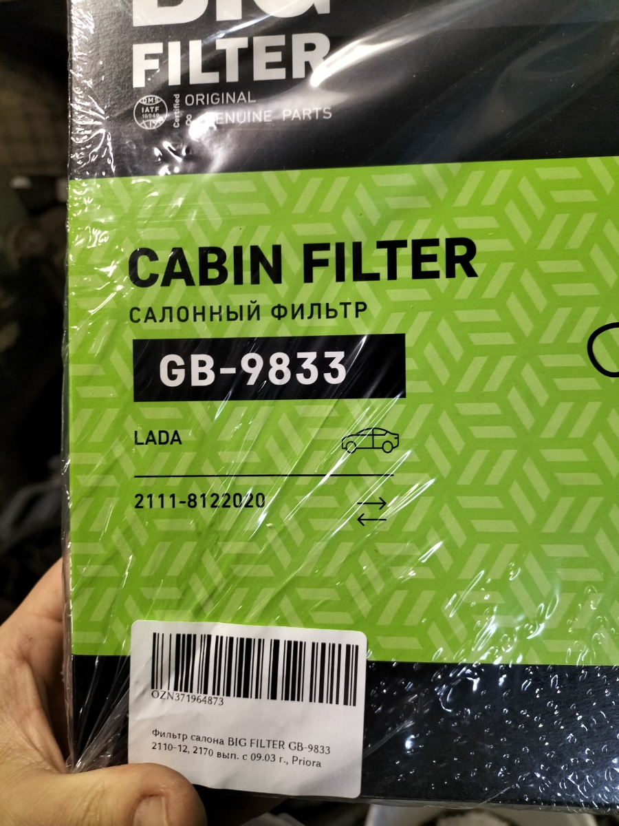 Фильтр салона "LADA Vesta, X-RAY" BIG Filter GB-9978