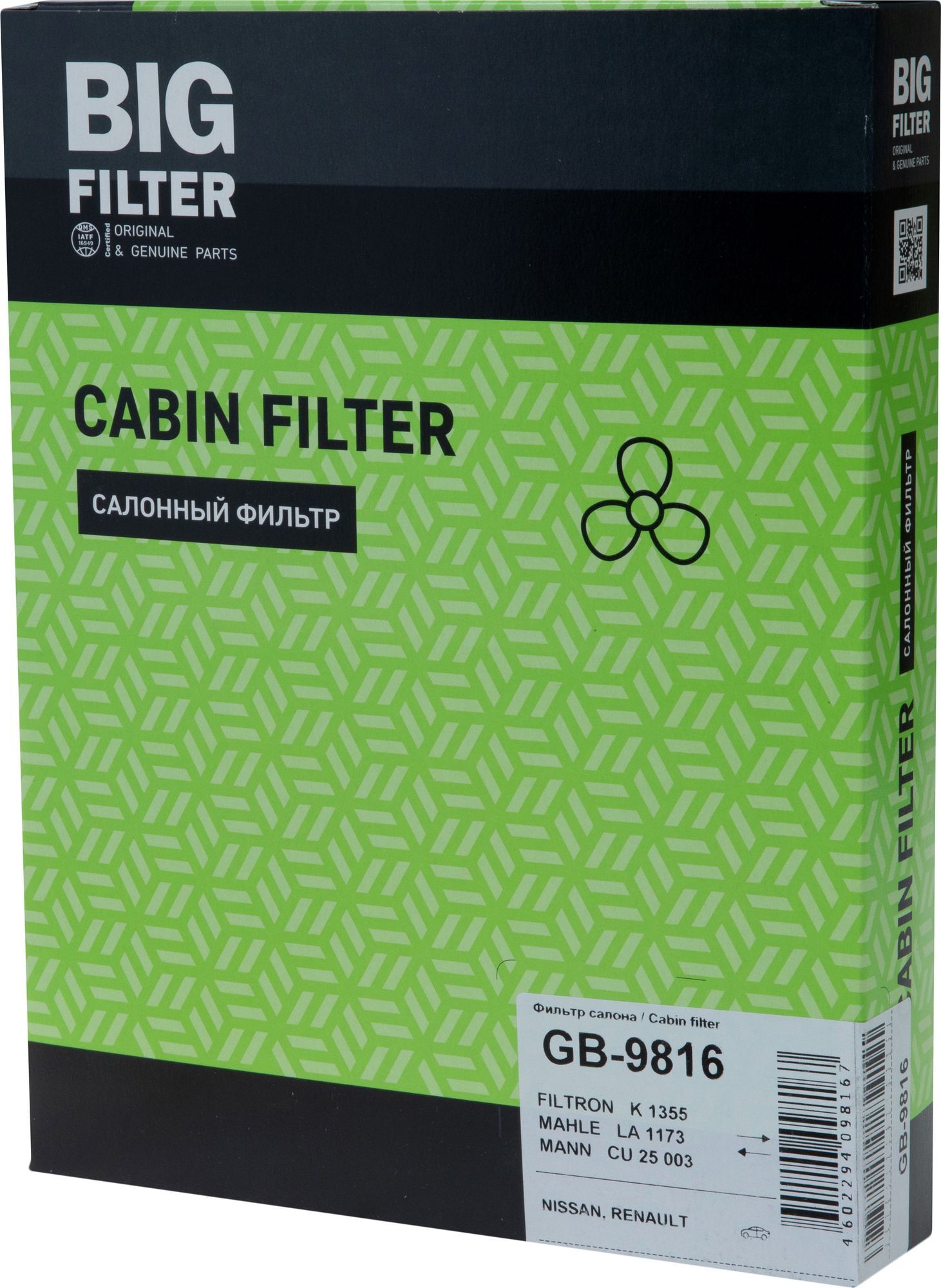 BIG Filter GB9978 Фильтр салона RENAULT Clio Logan II/Sandero II 12-, LADA Vesta