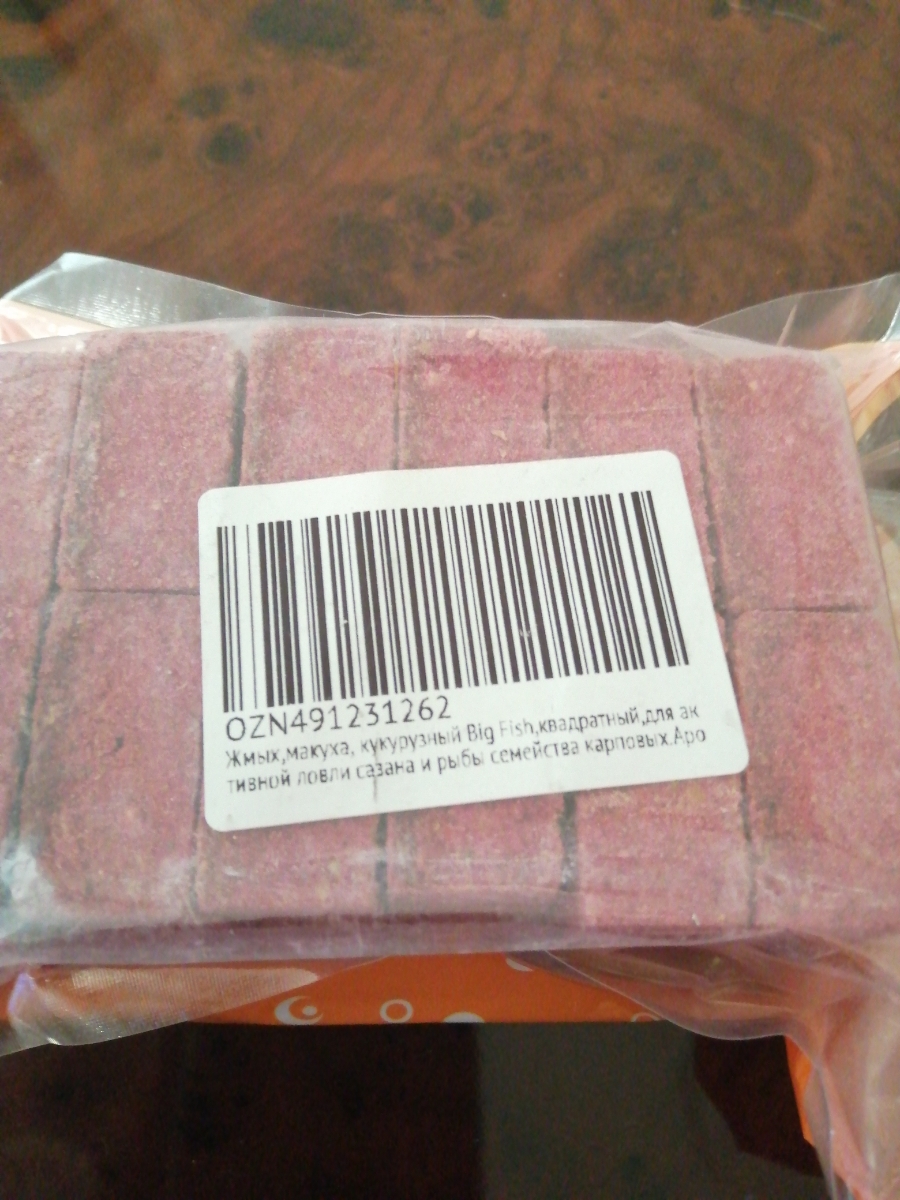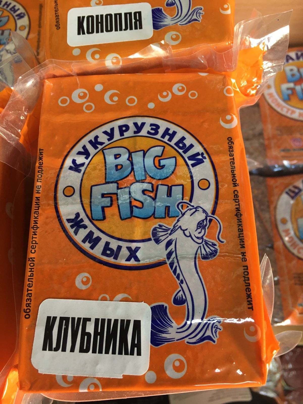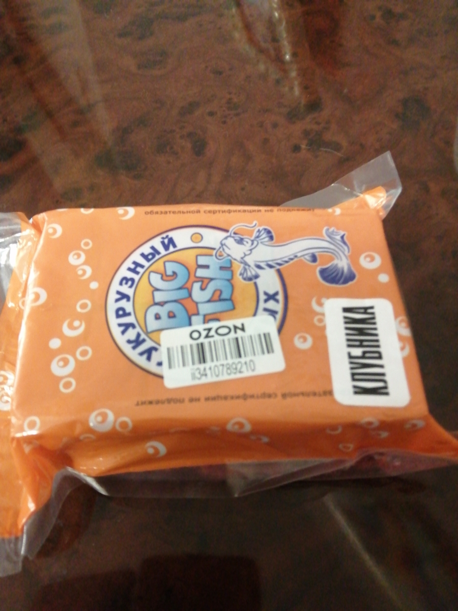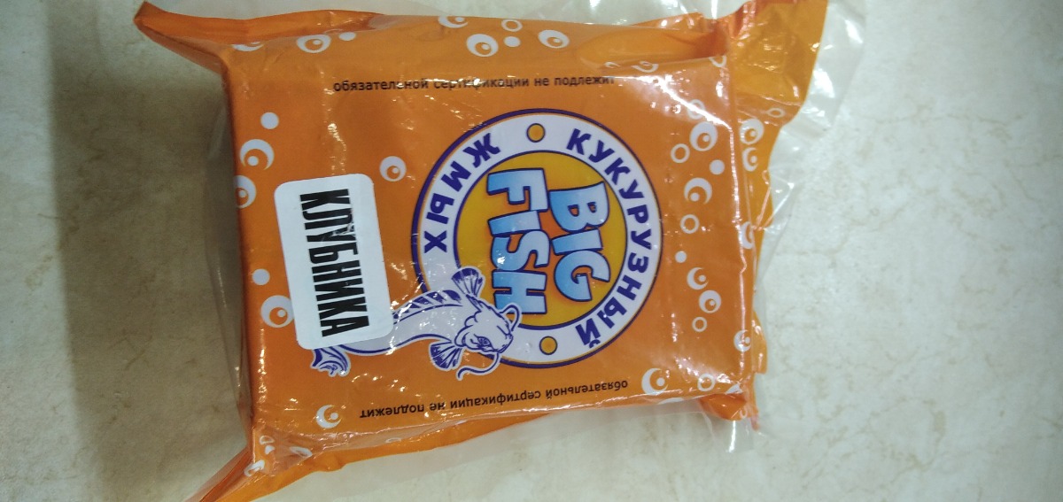 Жмых,макуха, кукурузный Big Fish,квадратный,для активной ловли сазана и рыбы семейства карповых.Аромат-КЛУБНИКА.Вес-417 гр.