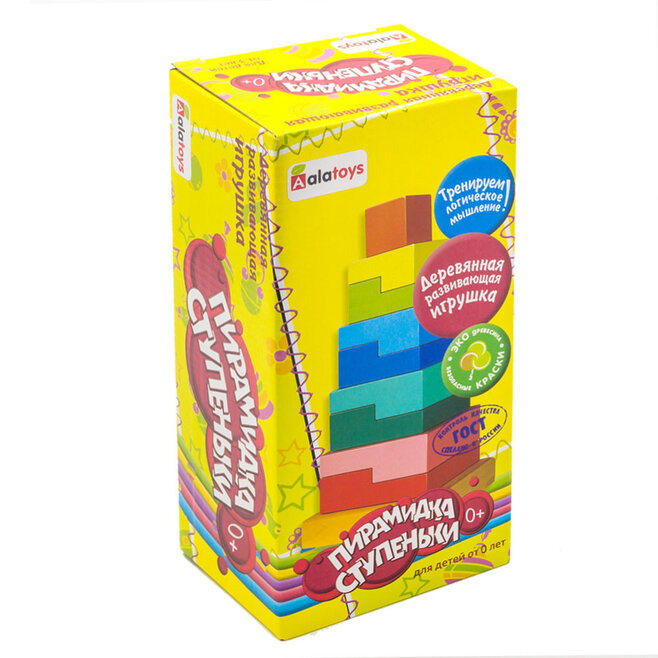 Игрушка для детей интерактивная развивающая Пирамидка Ступеньки 10 деталей (деревянная)