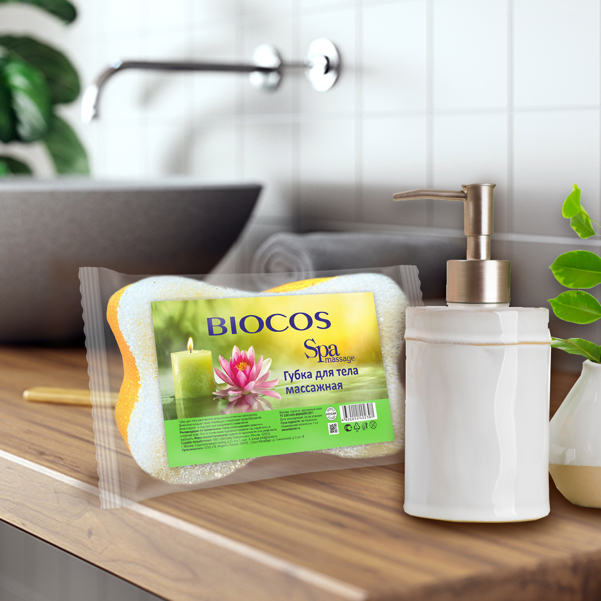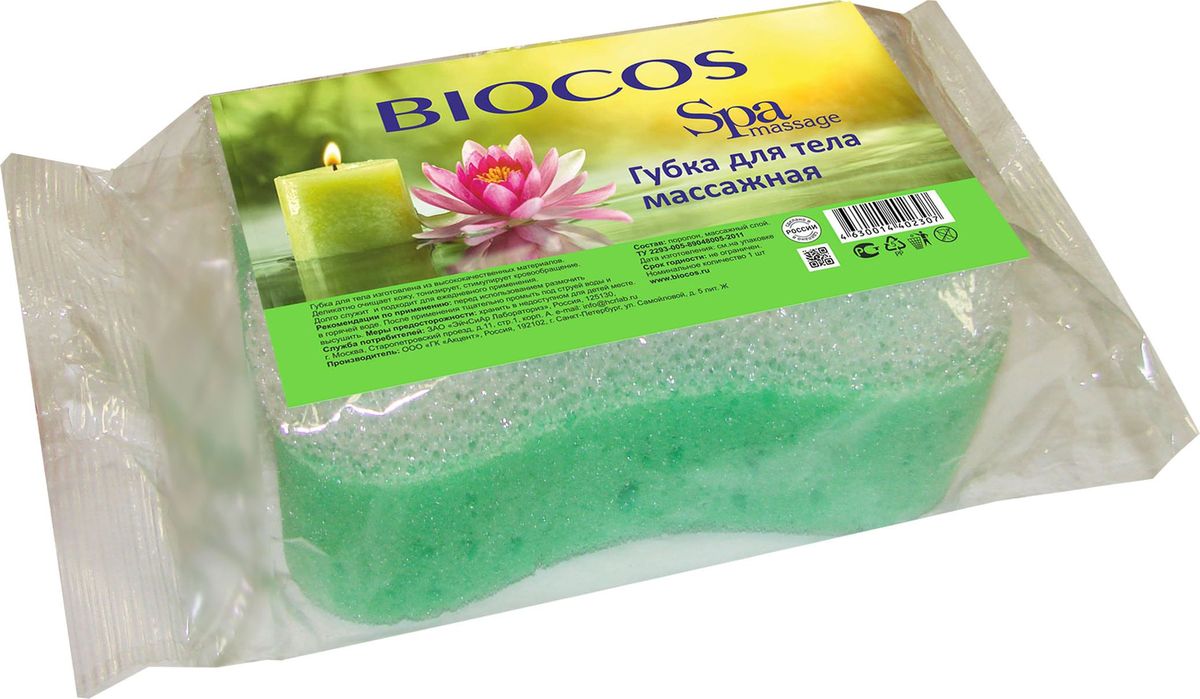 Губка для тела BioCos, массажная, цвет в ассортименте