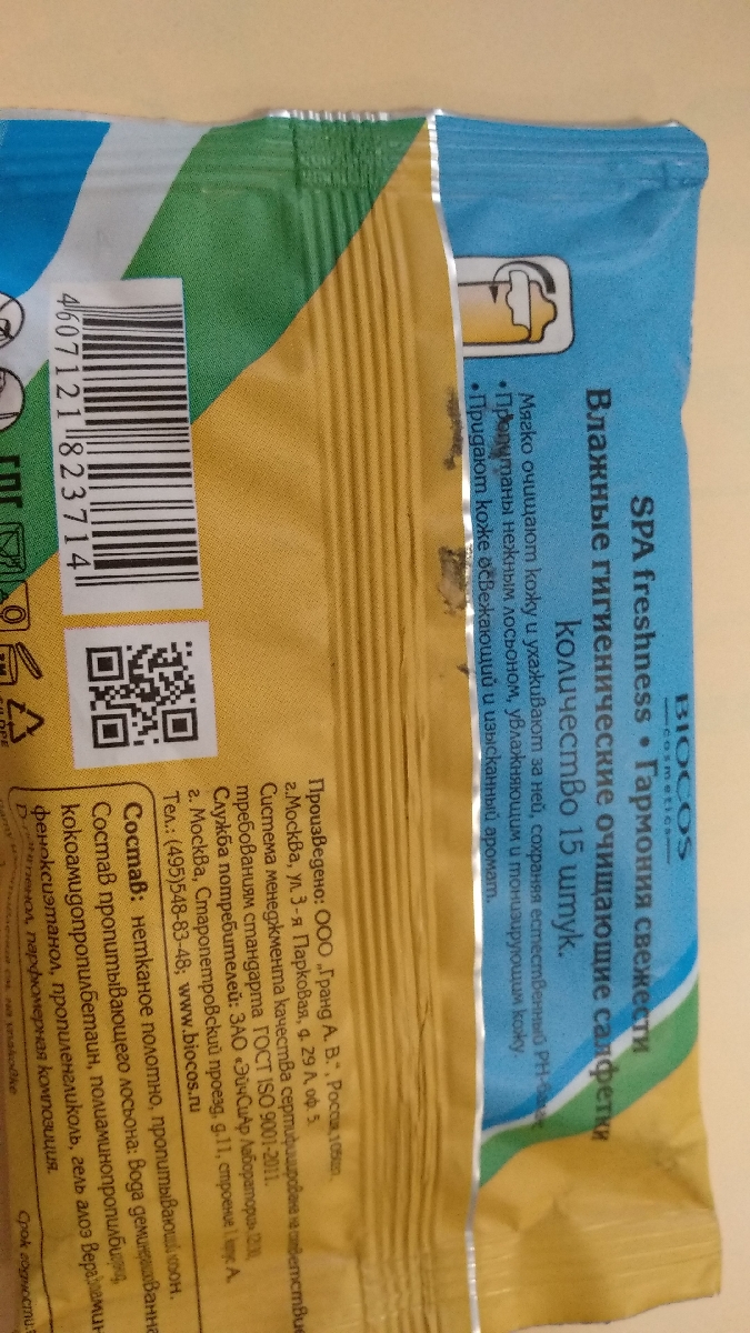 BioCos Влажные салфетки "SPA Freshness", с ионами серебра, 15 шт