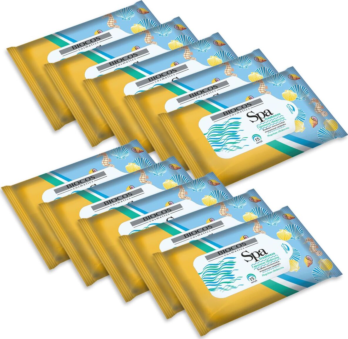 Влажные салфетки BioCos морская свежесть, Spa Freshness, 150 шт., 10 упаковок