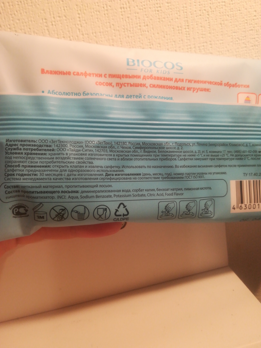Салфетки влажные BioCos, для сосок и игрушек, 100 шт. (5уп.)