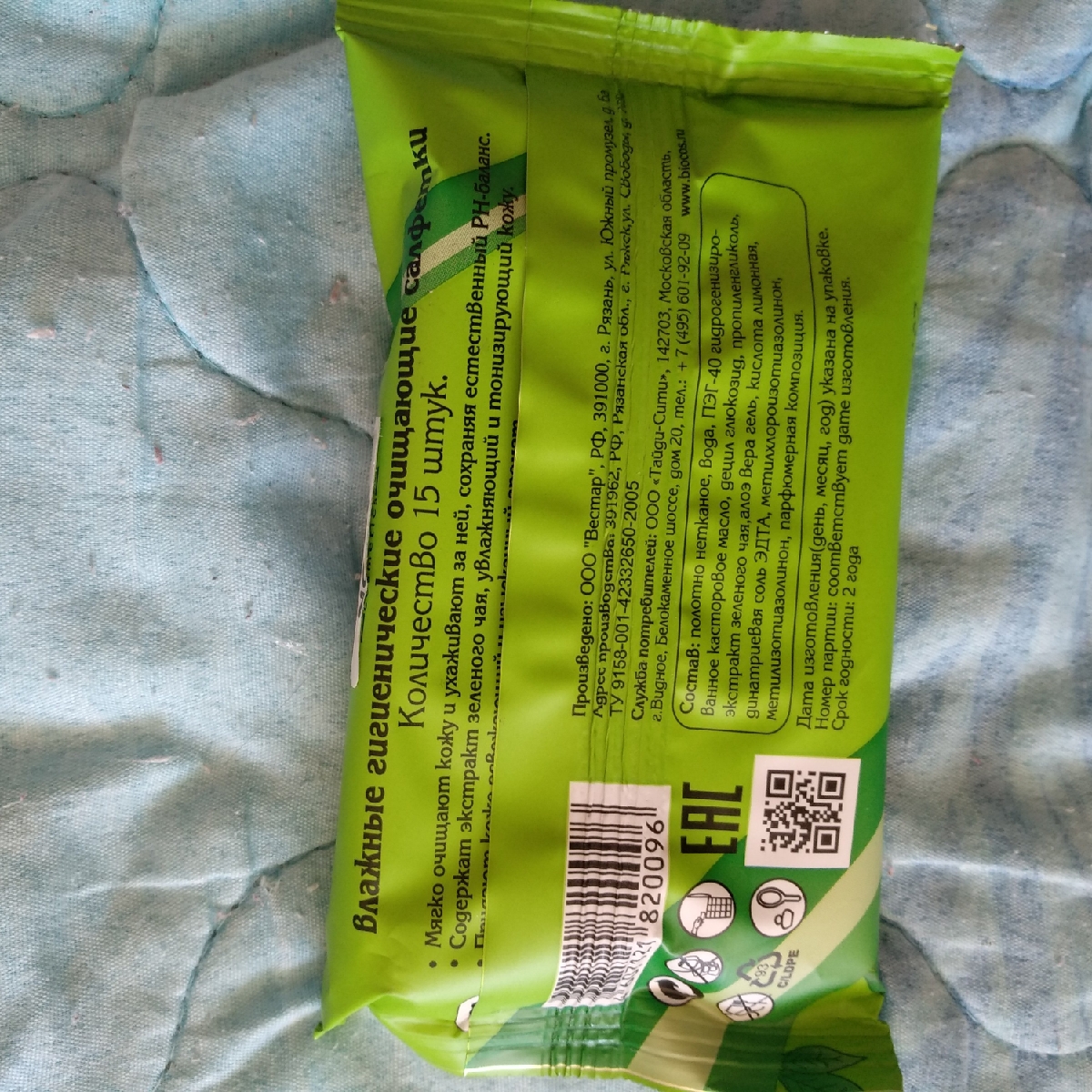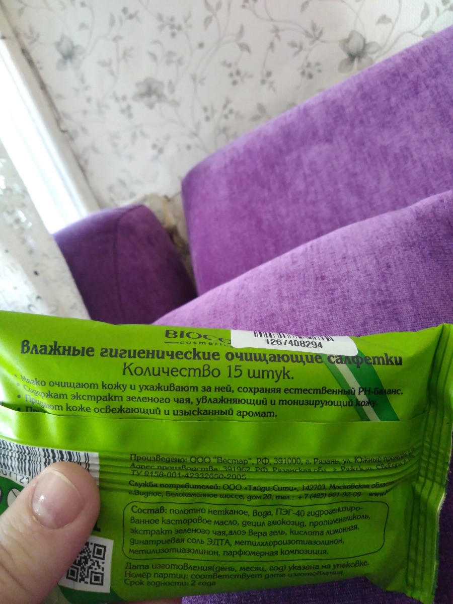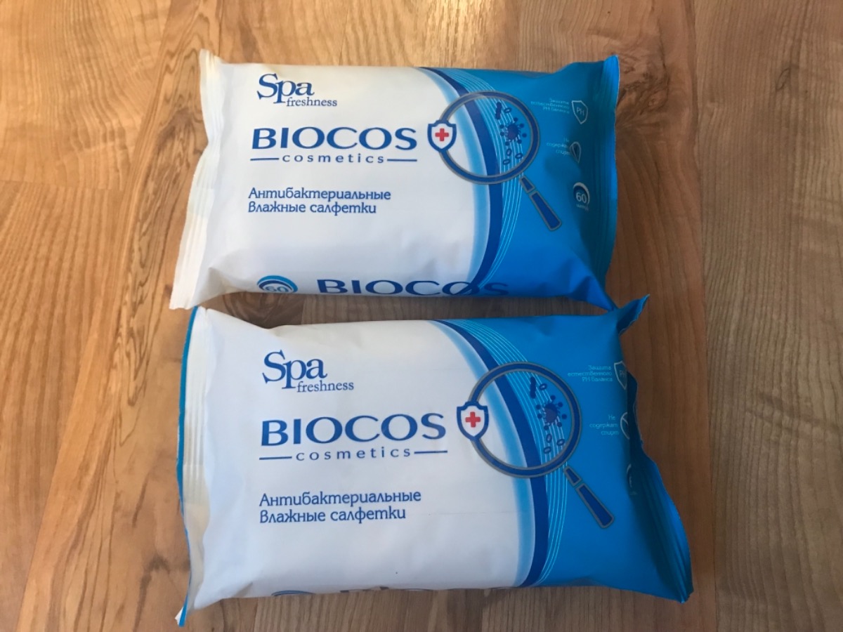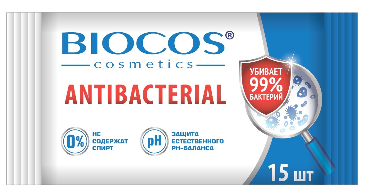 Влажные салфетки Biocos, антибактериальные, 15 шт