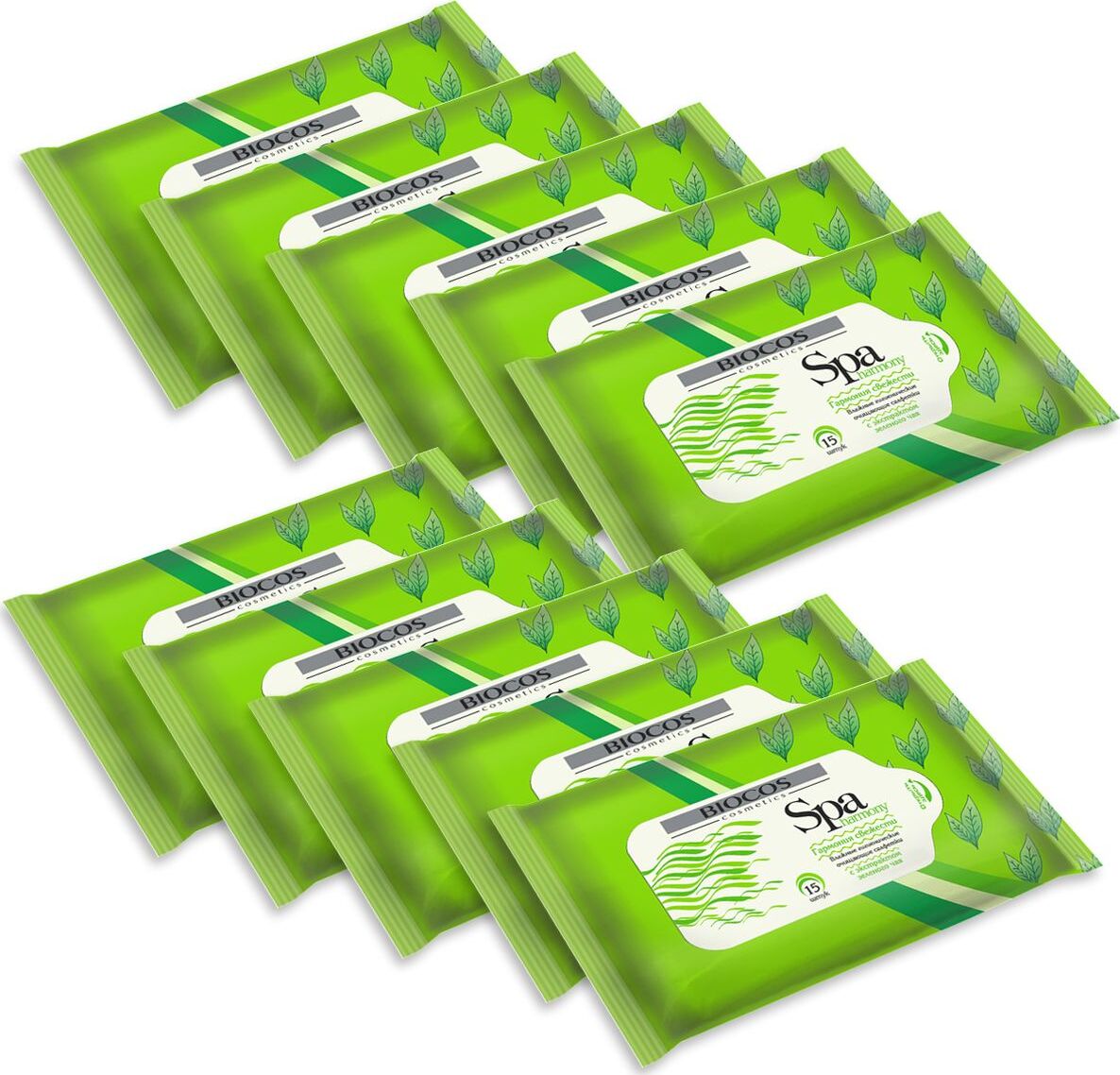Влажные салфетки BioCos зеленый чай, SPA Harmony, 150 шт., 10 упаковок
