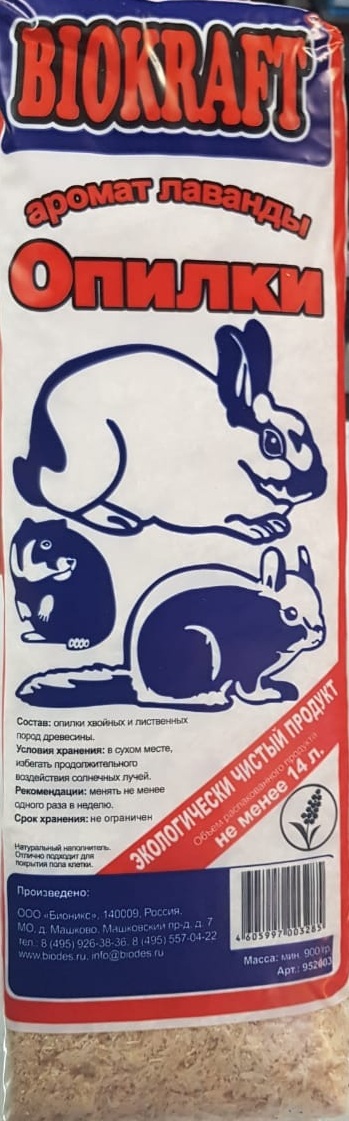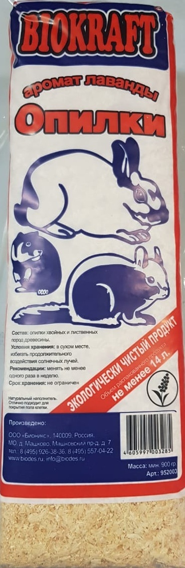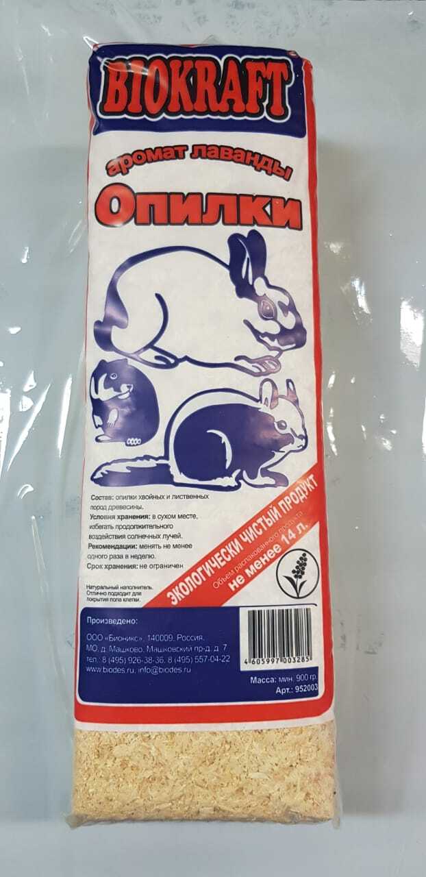 Опилки Biokraft пресованные с ароматом лаванды для грызунов, 900г