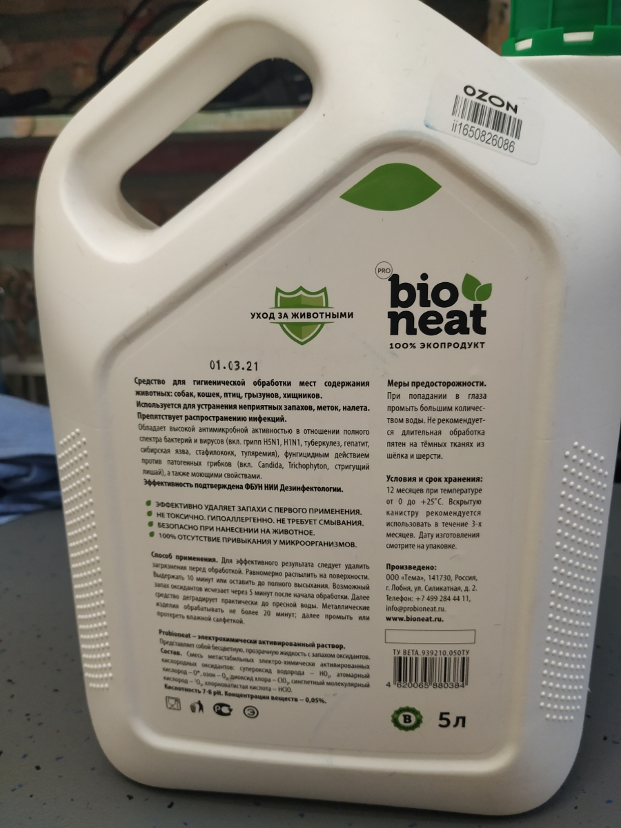 Дезинфицирующее средство / Гигиена содержания животных / Ликвидатор запаха Bioneat "Животные" 5л