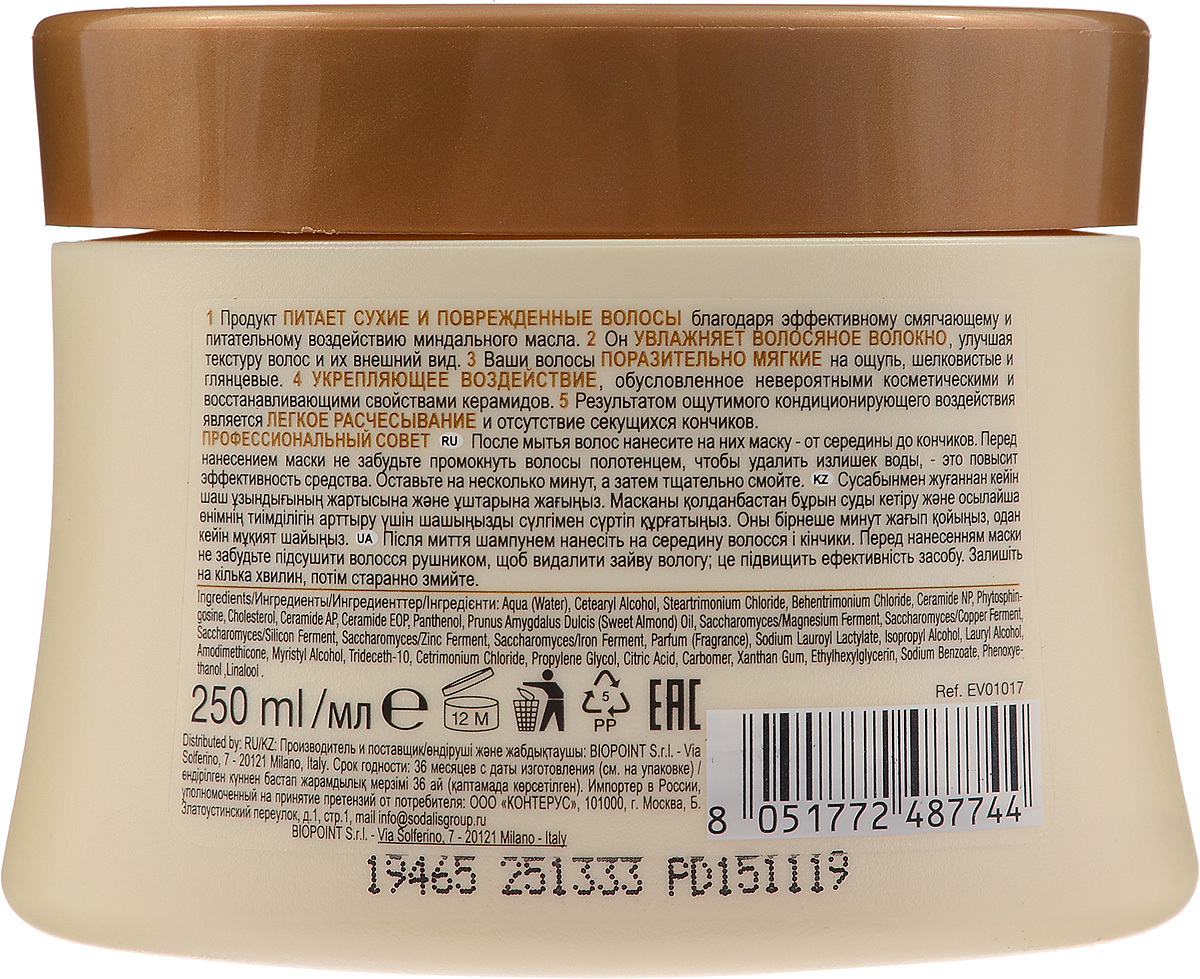 Маска Ультра питательная для поврежденных и сухих волос 250 мл (Италия)