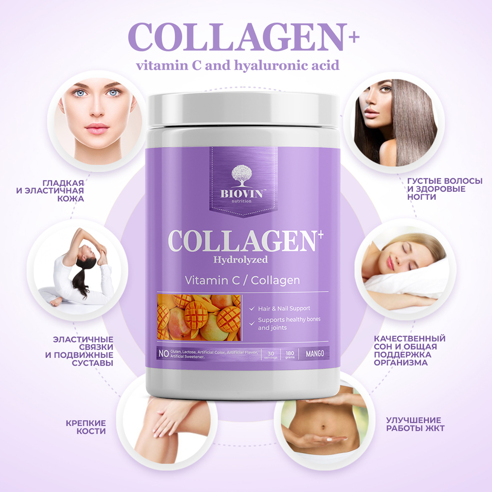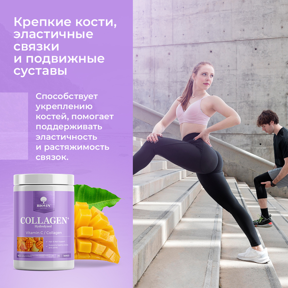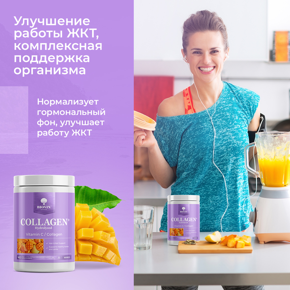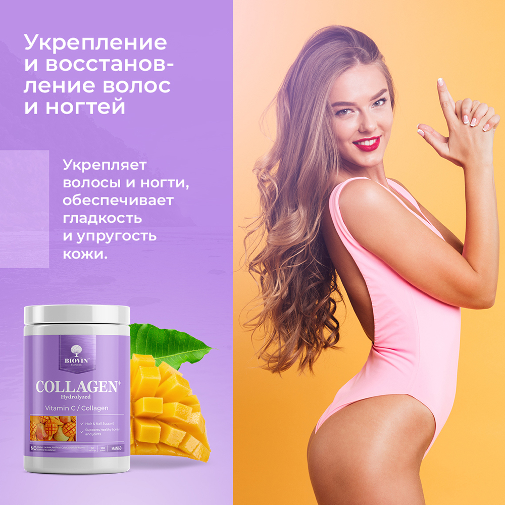 BIOVIN/Collagen+Vitamin С/банка белая 180 gr/вкус-манго/ коллаген питьевой
