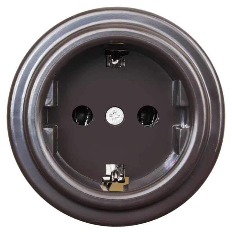 Bironi Лизетта Розетка винтажная ретро с заземляющим контактом коричневая B1-101-22 Бирони