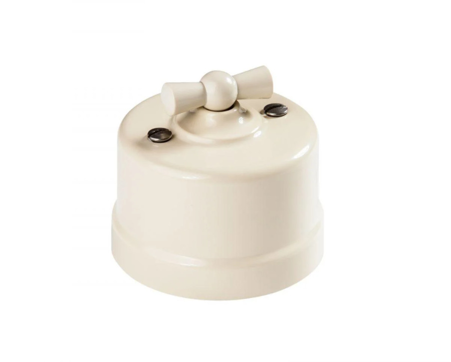 Выключатель BIRONI "Ретро" 1-клавишный поворотный, негорючий пластик, цвет белый.
