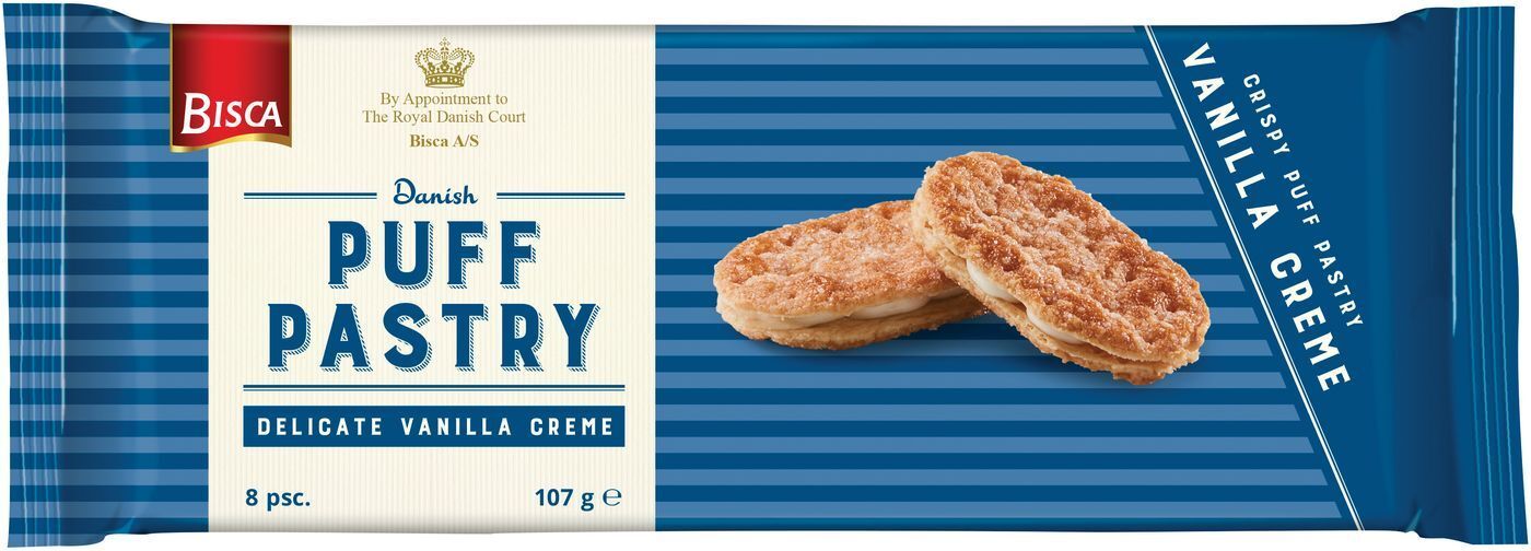 Печенье слоёное BISCA "Puff Pastry", хрустящее, с ванильной начинкой, 107 г
