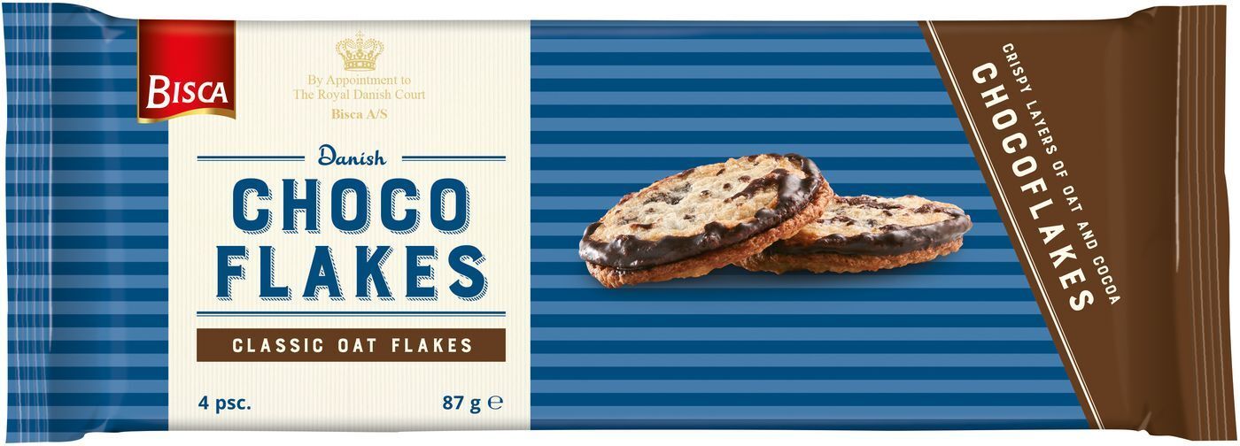 Овсяное печенье с какао BISCA "Choco Flakes", хрустящее, с шоколадными хлопьями, 87 г