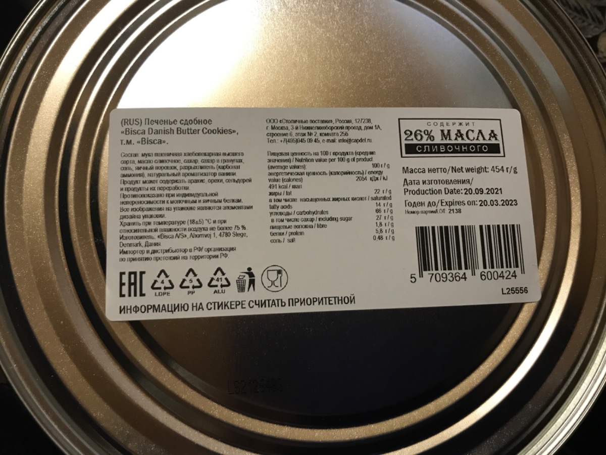Печенье сдобное Bisca "Danish Butter Cookies", 454 г 7% сливочного масла ж/б