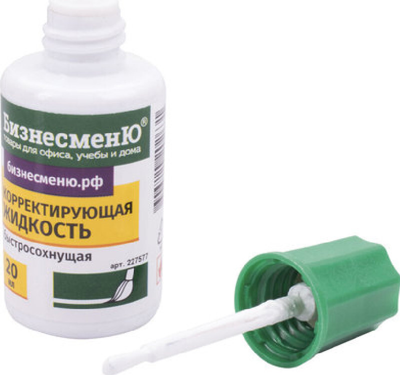 Корректирующая жидкость БИЗНЕСМЕНЮ, быстросохнущая, 20 мл, с кисточкой (3 шт)