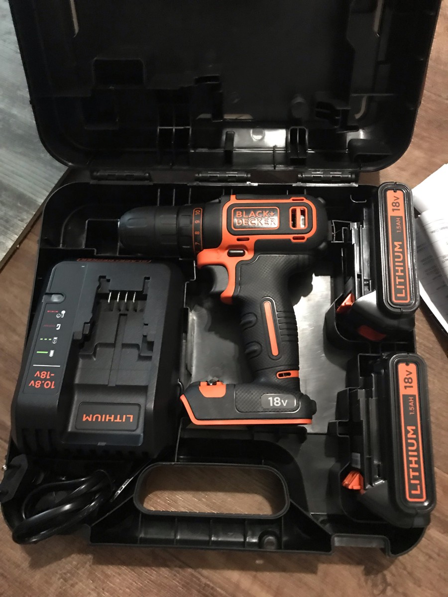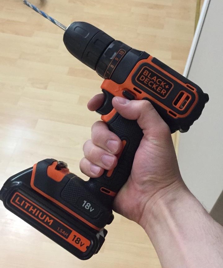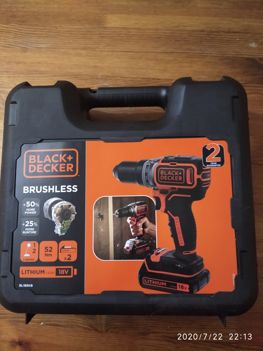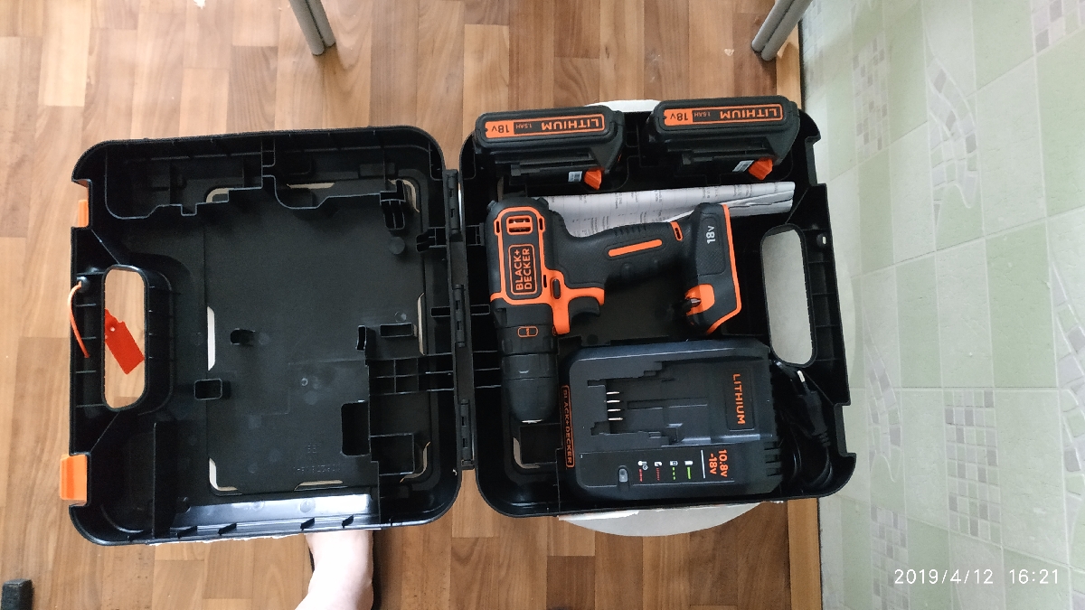 Дрель-шуруповерт Black+Decker BL186KB, Сменный аккумулятор, 18 В, 52 Нм, 2 АКБ