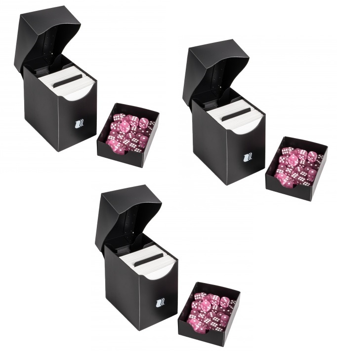 3 пластиковые коробочки Blackfire с отделением для кубов - Чёрные (на 80+ карт)