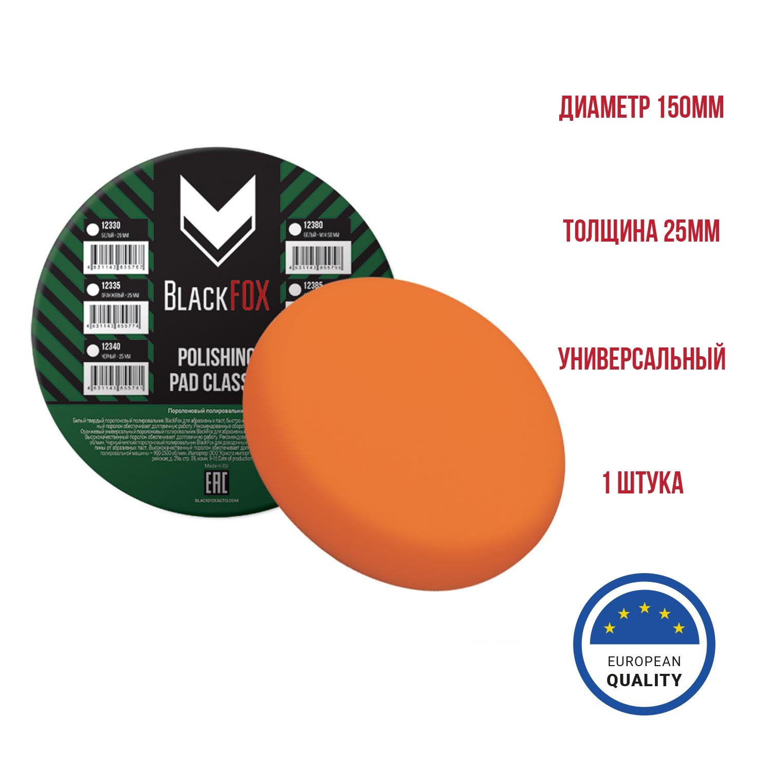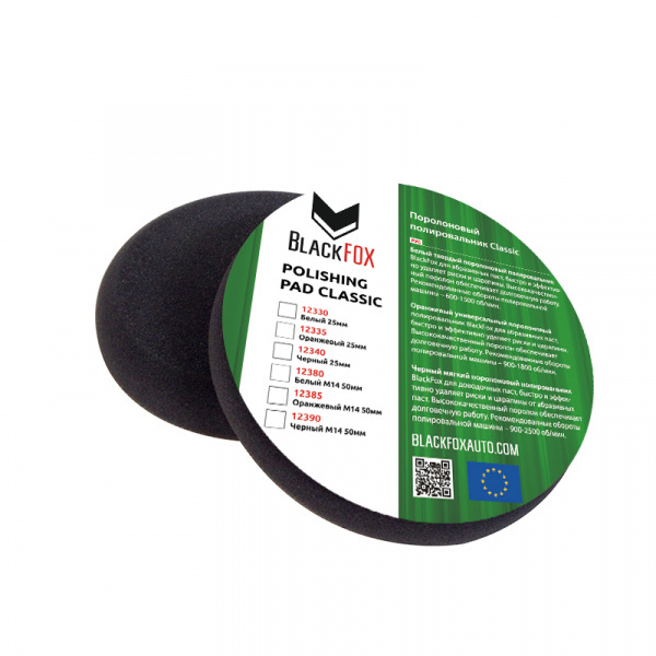 12340 BlackFox Полировальник поролоновый на липучке CLASSIC, 150 х 25 мм, мягкий, черный