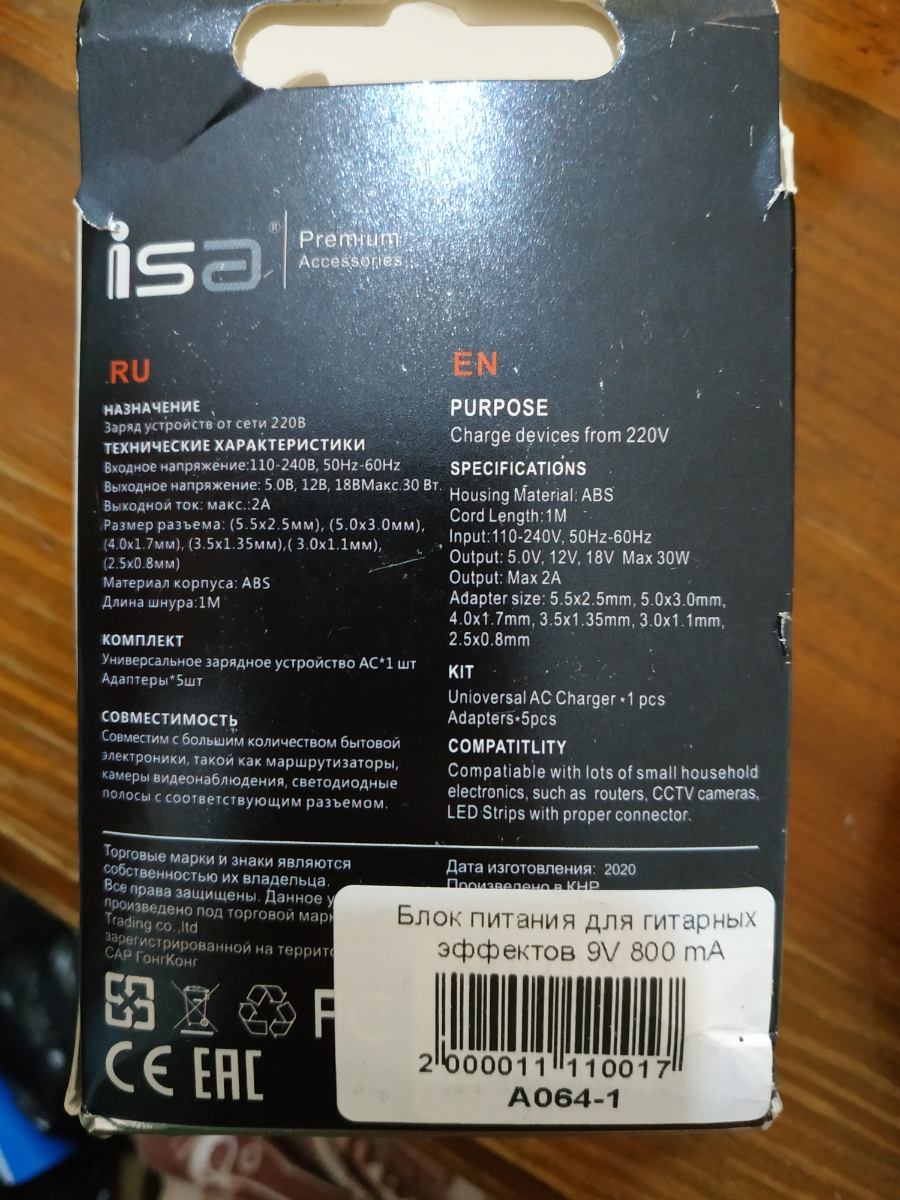 Блок питания для гитарных эффектов 9V 800 mA
