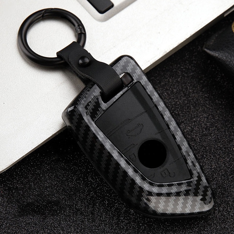 Пластмассовый + силиконовый чехол на ключ зажигания BMW под карбон с брелоком
