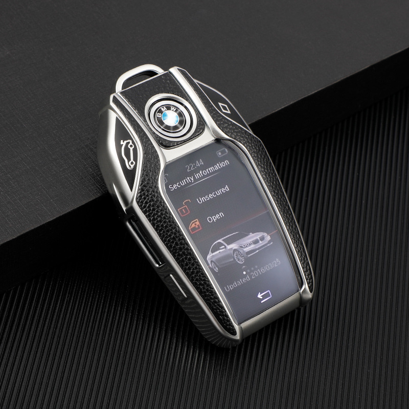 Силиконовый чехол на ключ зажигания BMW (БМВ) серебристый (имитация кожи)
