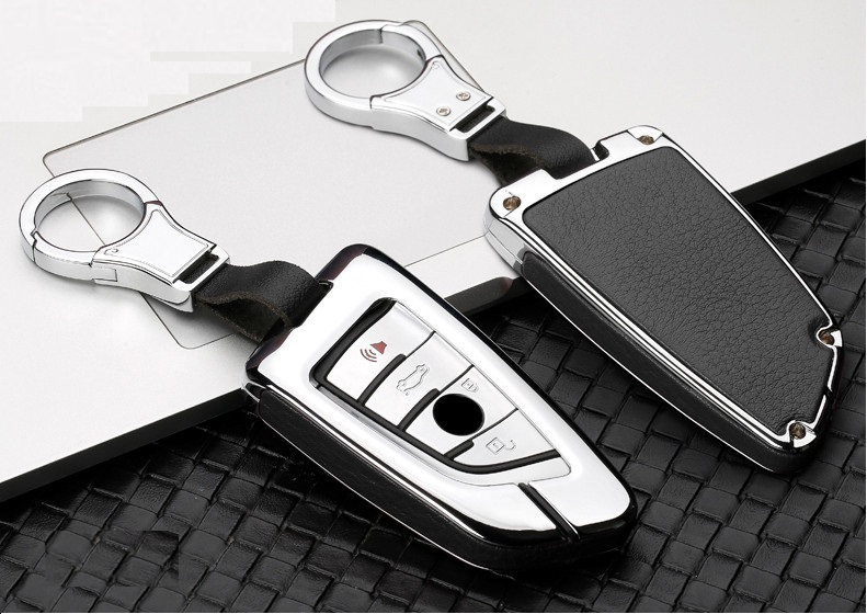 Чехол на ключ зажигания BMW из цинкового сплава и натуральной черной кожи с брелоком