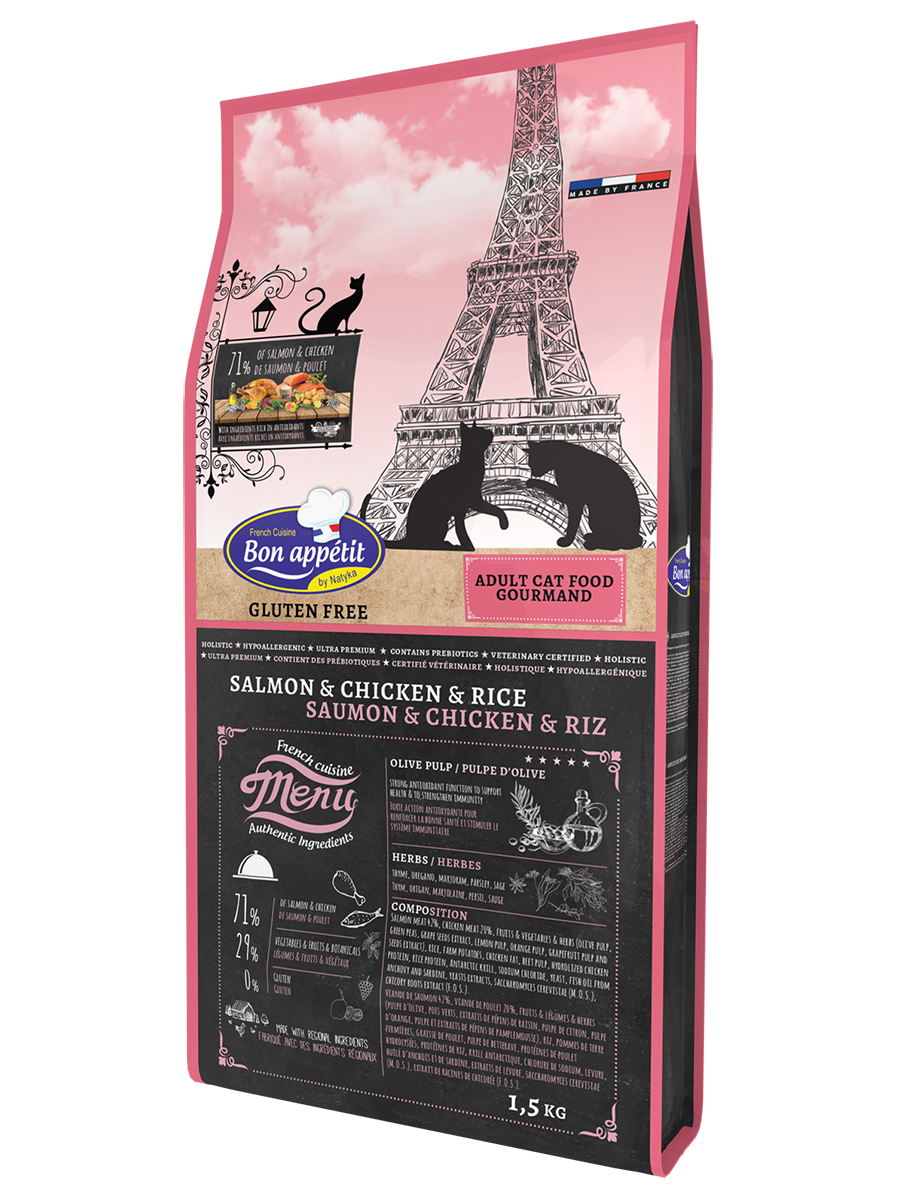 Bon Appetit CAT Adult Gourmand Корм сухой для кошек Гурман с Лососем, Курицей и Рисом 1,5кг
