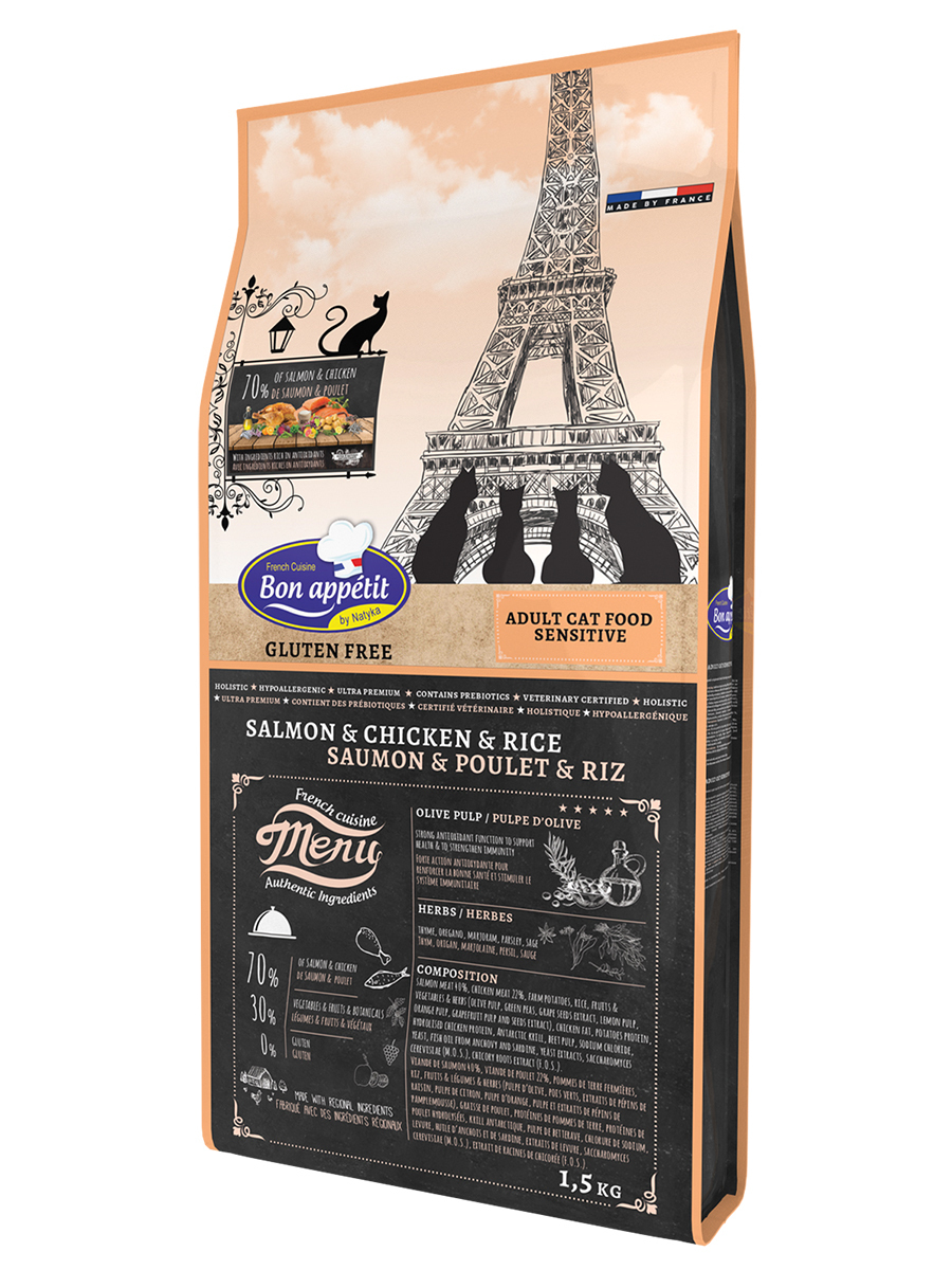 Bon Appetit CAT Adult Sensitive Корм сухой для чувствительных кошек с Лососем, Курицей и рисом 1,5кг