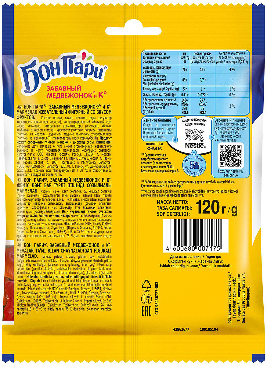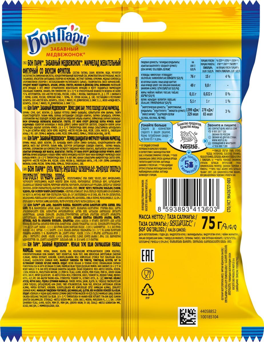 Жевательный мармелад фигурный Бон Пари Забавный Медвежонок и Ко, со вкусом фруктов, 120 г