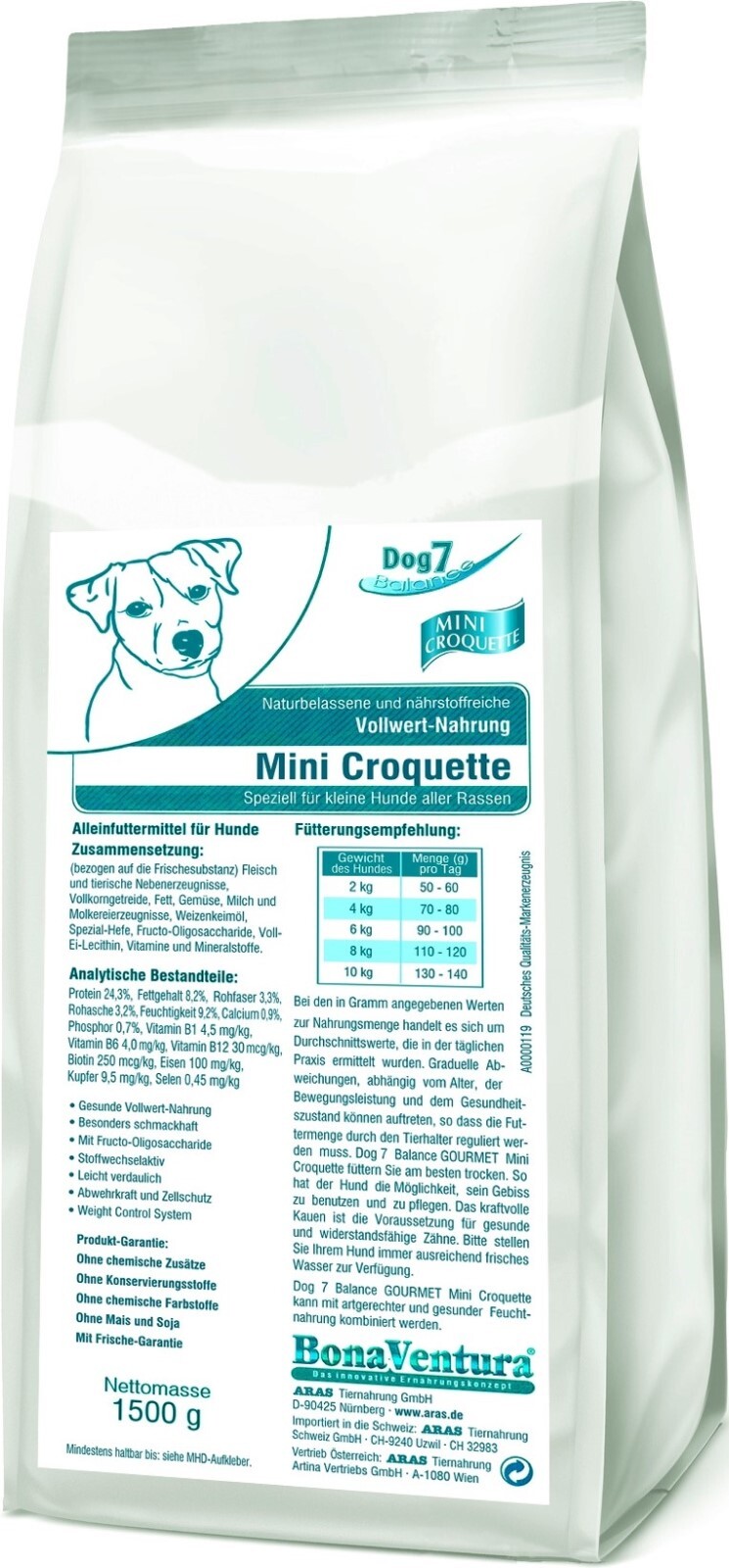 Корм сухой BonaVentura "Dog 7 Mini Croquette" для для собак мелких пород и гурманов, 1,5 кг