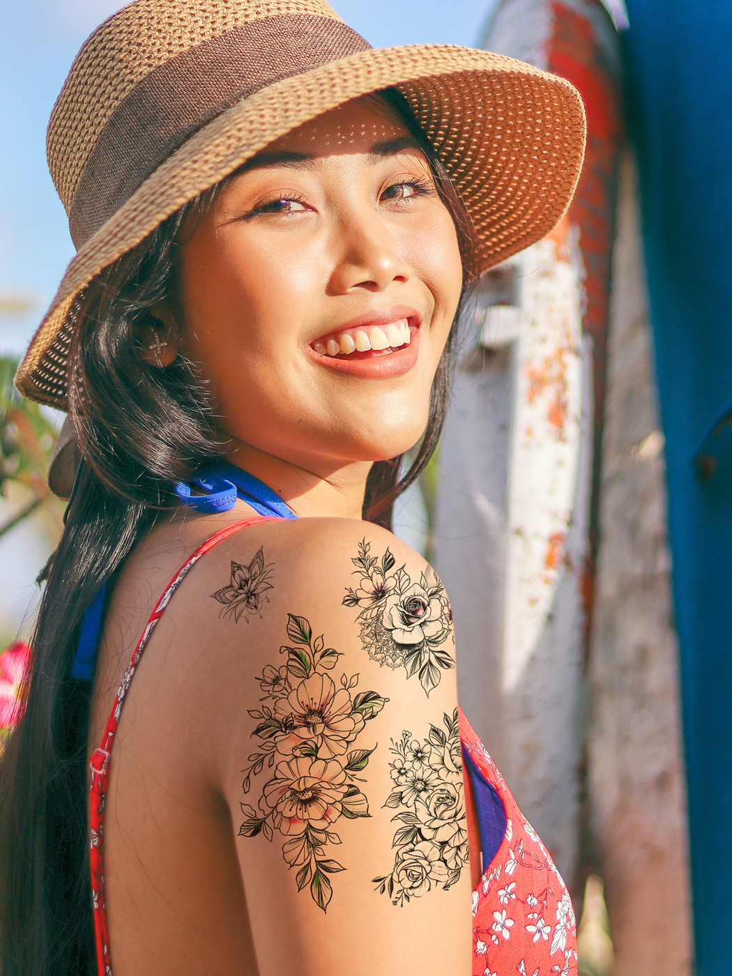 Boninio Tattoo / Временная переводная татуировка № 377 "Цветы" 21х15 см.