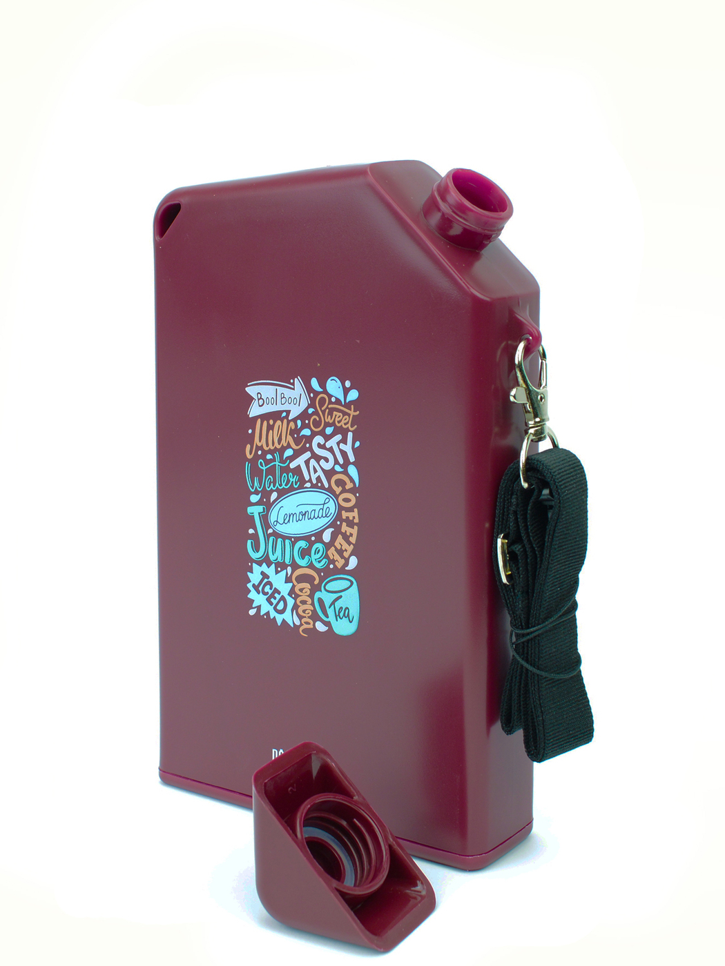 Туристическая бутылка для воды Bool-Bool плоская с принтом 500, шоколадный