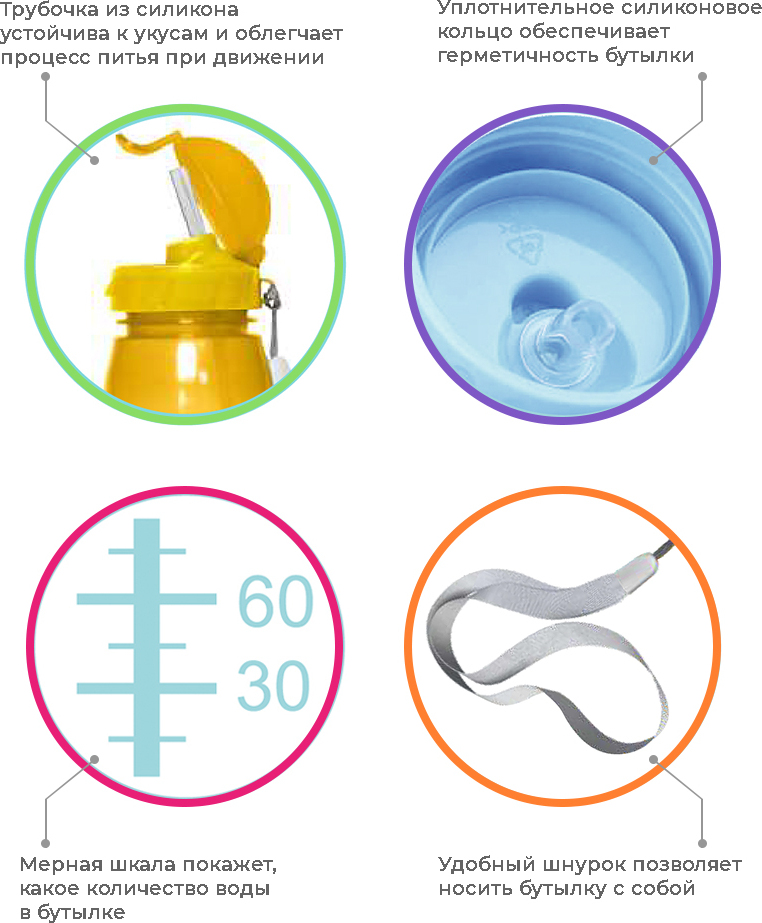 Бутылочка с трубочкой BOOL-BOOL, 270 мл, со шнурком
