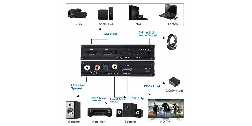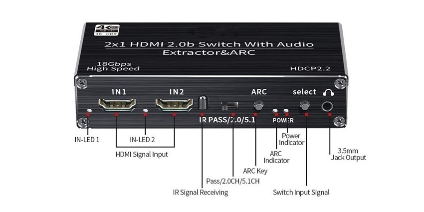 HDMI свитч и конвертер звука (HDMI ARC Audio Extractor) Booox OZV2