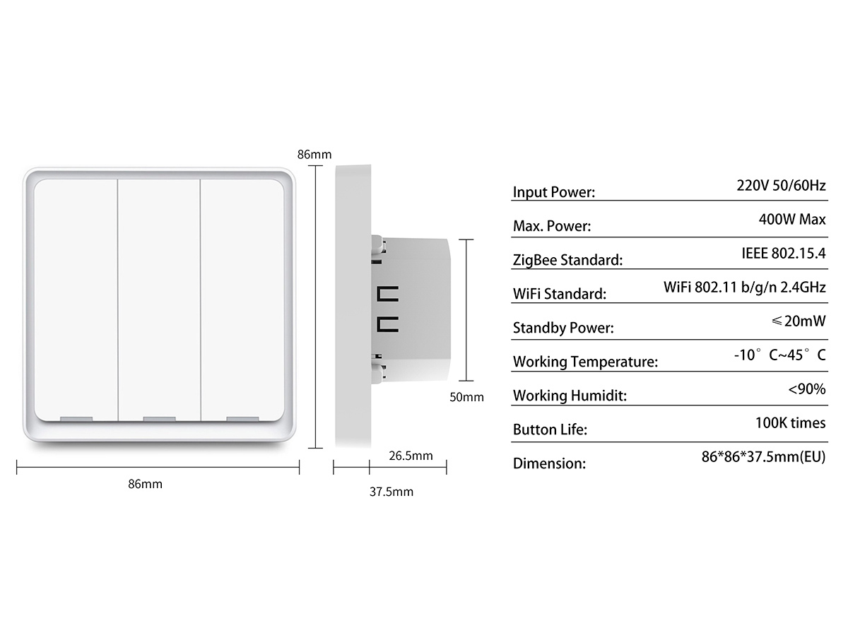 Умный выключатель Booox Tuya Zigbee с нулём 3 клавиши