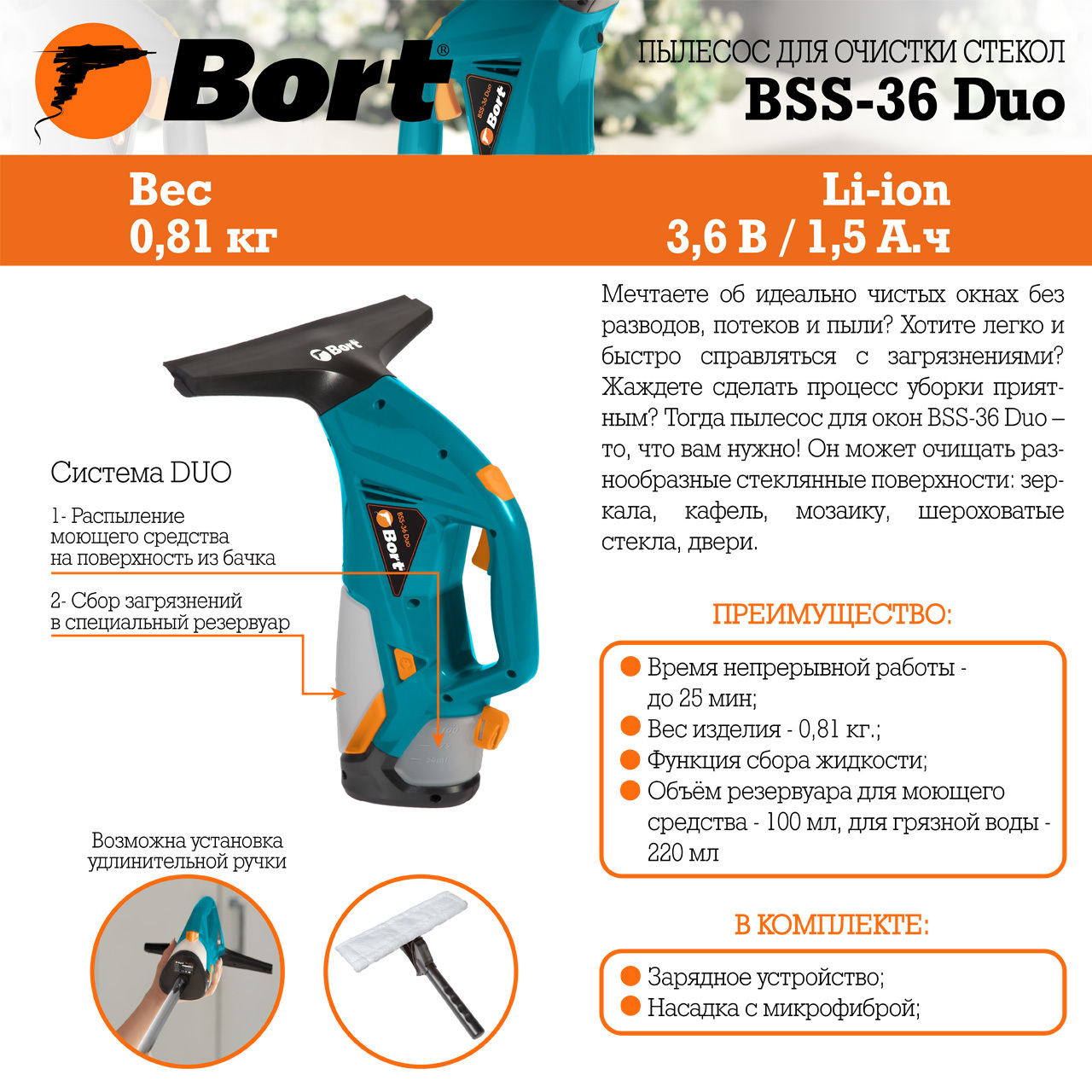 Пылесос для очистки стекол Bort BSS-36 Duo