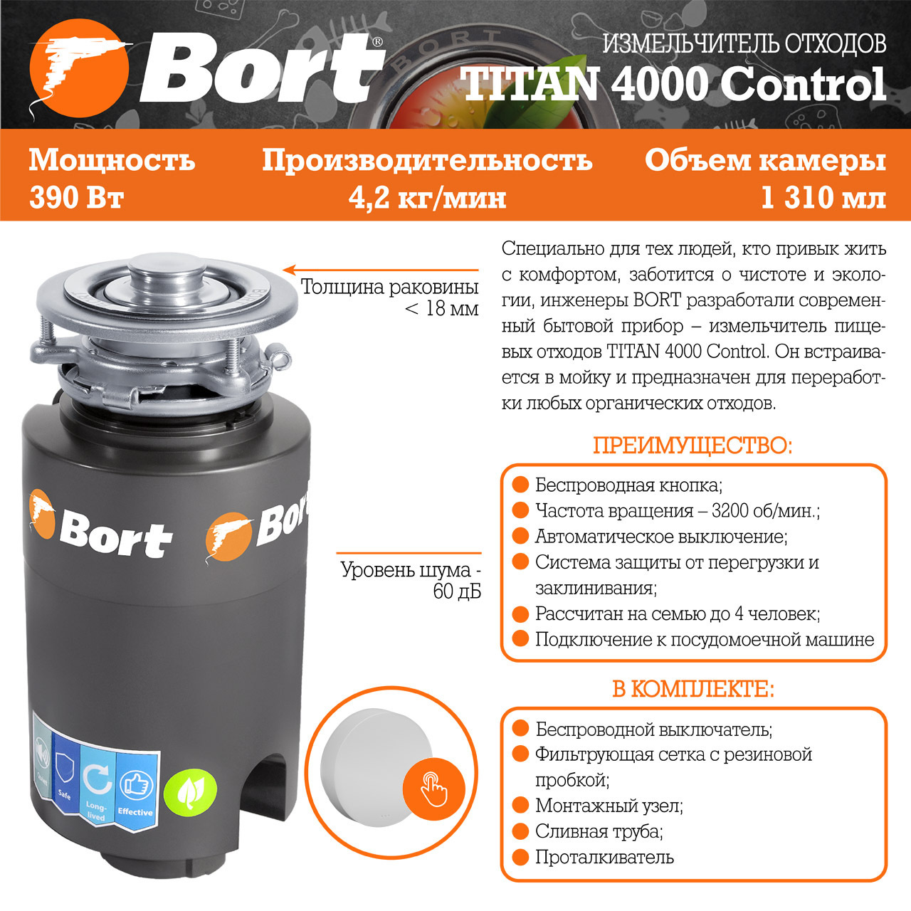 Измельчитель бытовых отходов Bort TITAN 4000 (Control)