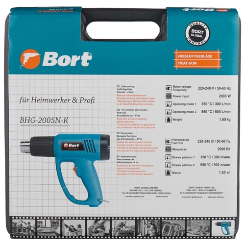 Бытовой строительный фен Bort BHG-2005N-K Case