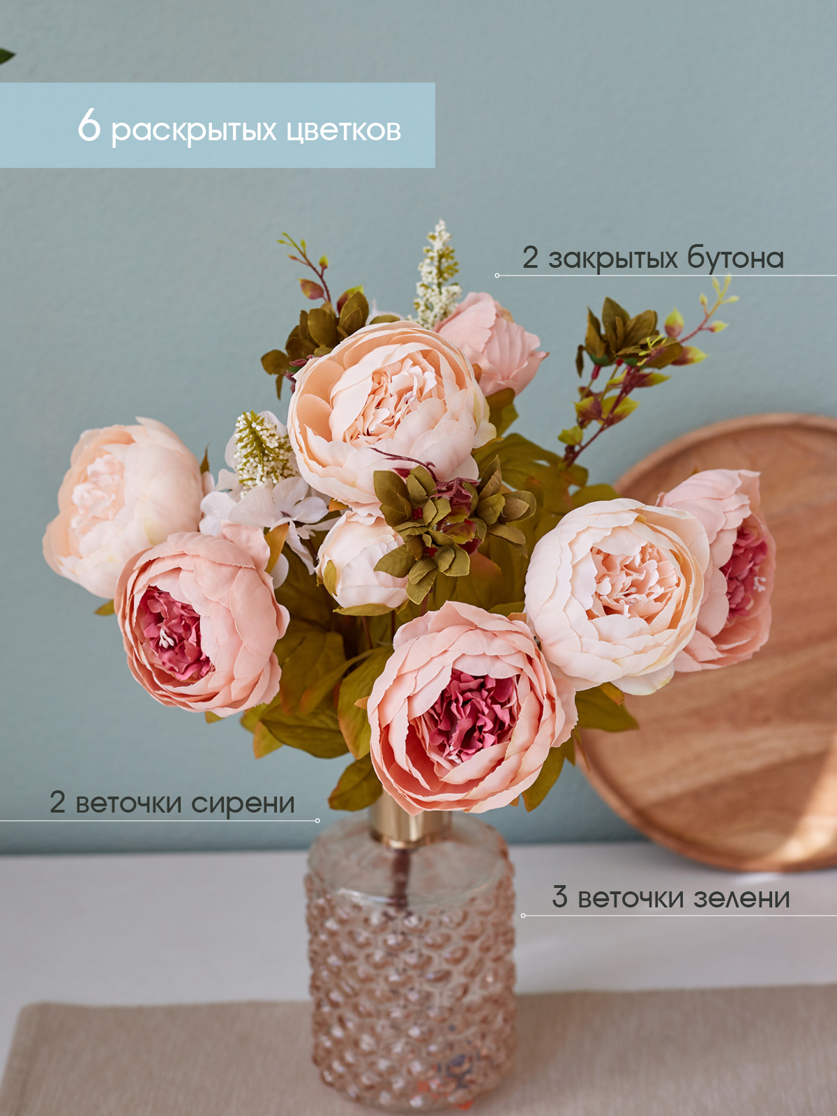 Botanique One / Букет пионов / Букет цветов / Цветочная композиция / Искусственные цветы / Декоративные цветы / Цветы для дома