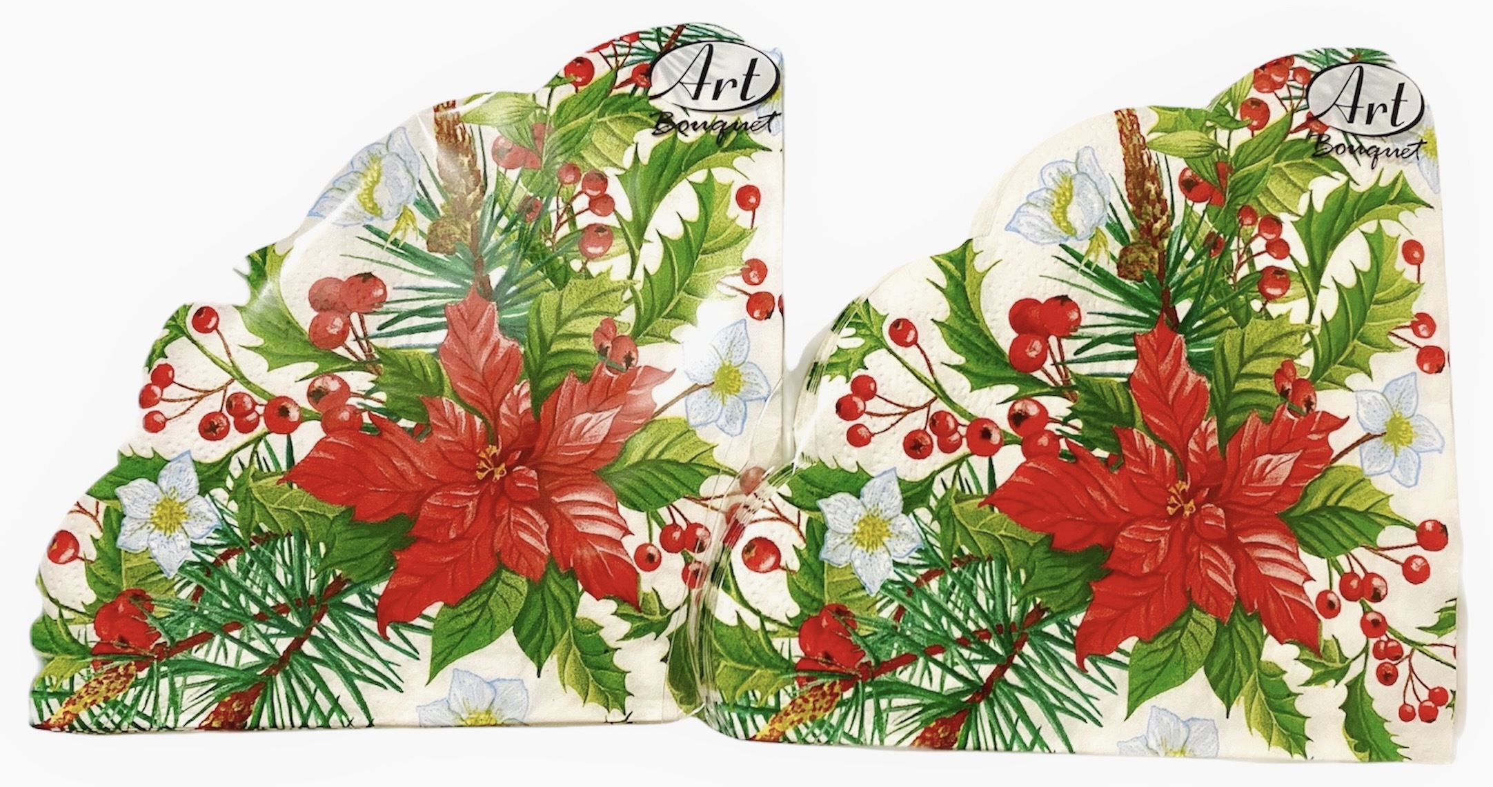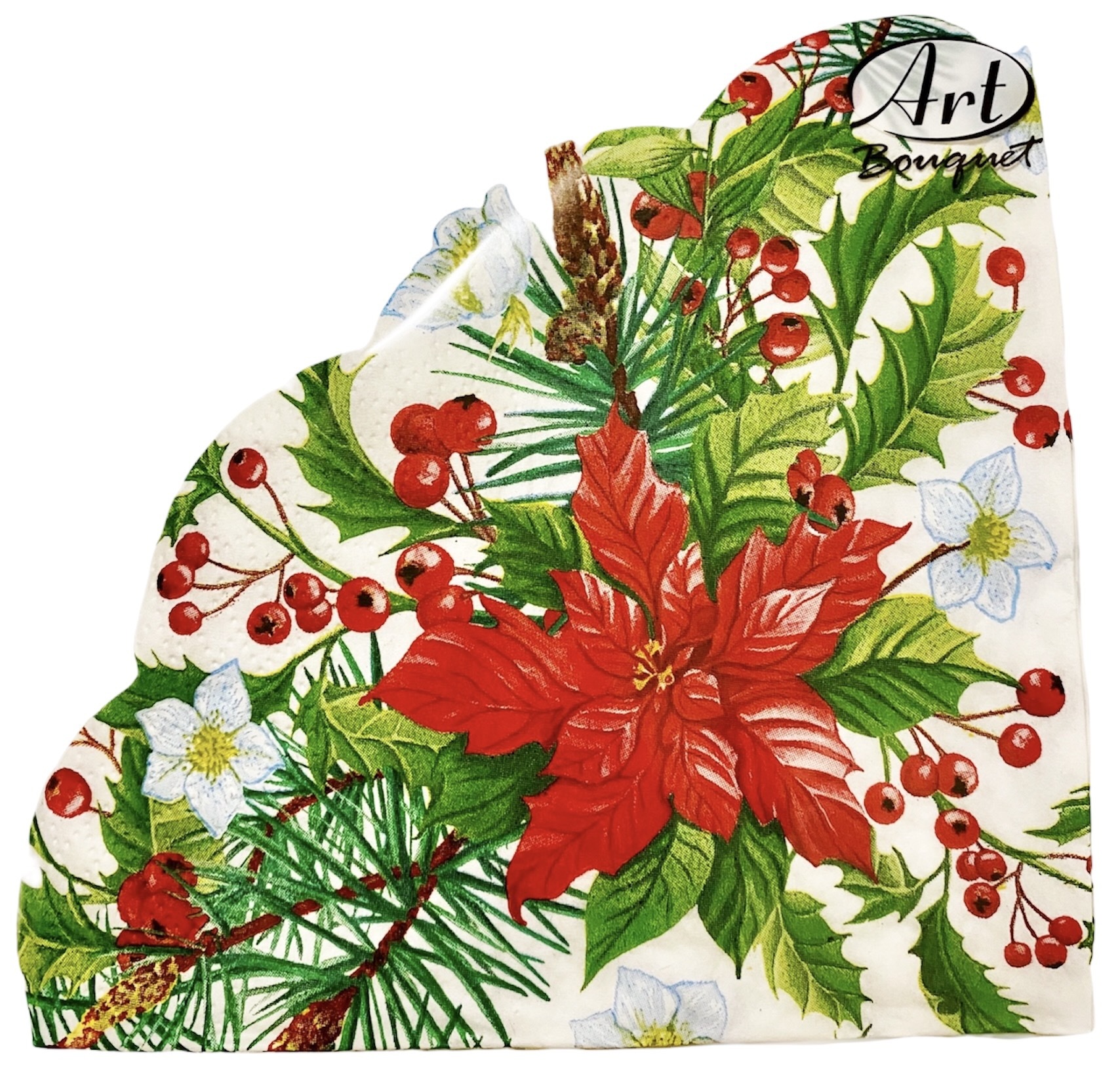 Салфетки бумажные, Пуансеттия, 2 шт., диаметр 32 см., 3 слоя, 12 листов.