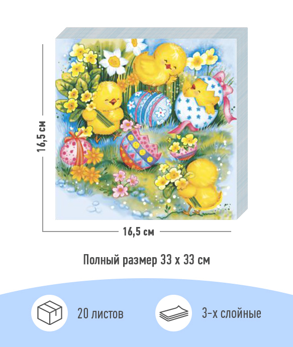 Салфетки двухслойные "Тюльпаны на синем", 33х33 см, 20 штук