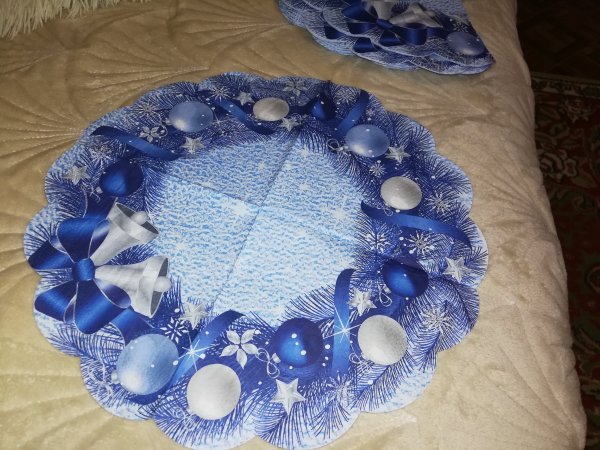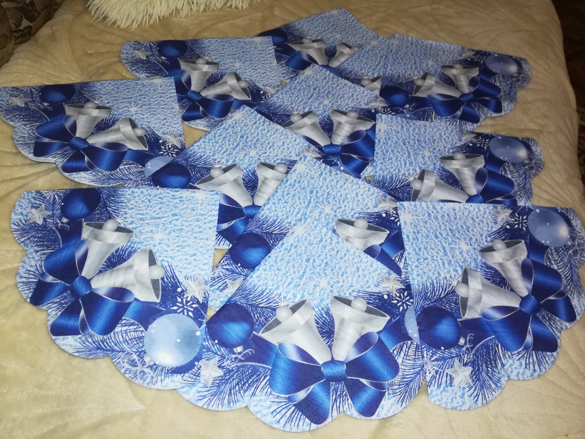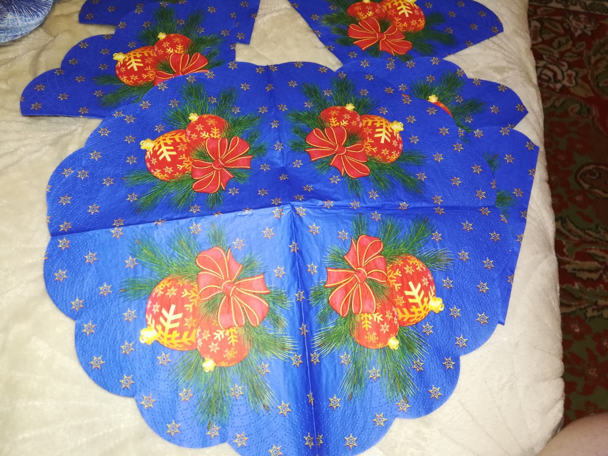 Салфетки бумажные, круглые, Новогодние шары на синем, 2 шт., диаметр 32 см., 3 слоя, 12 листов.