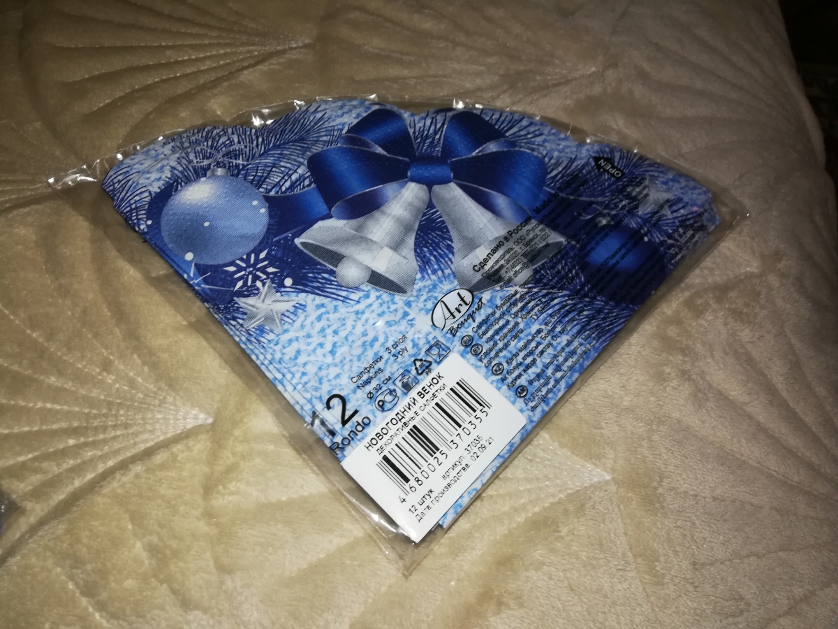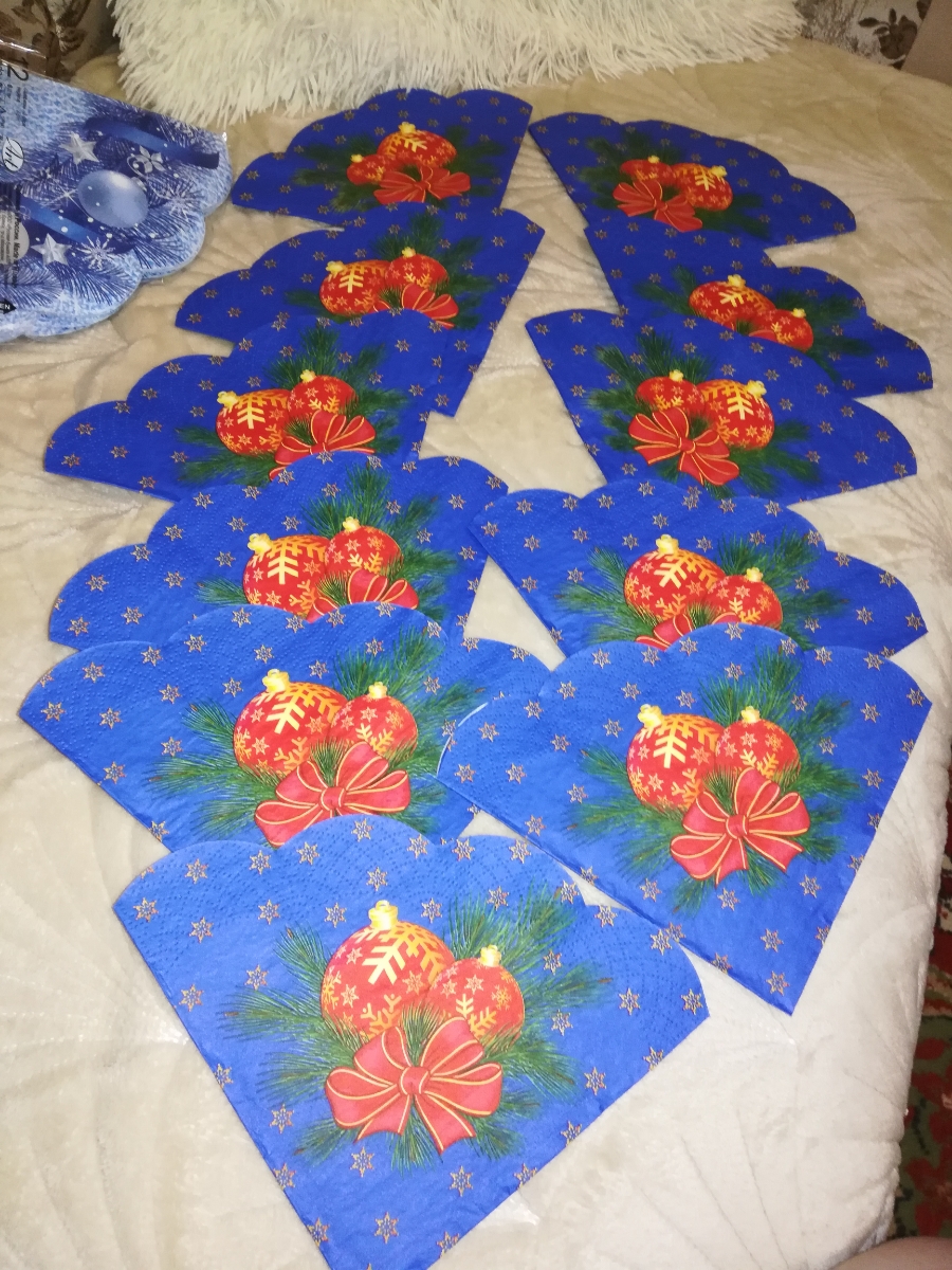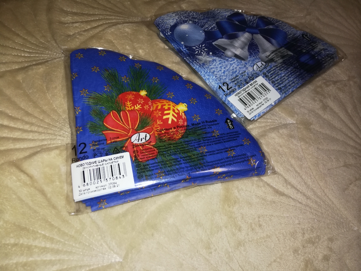 Салфетки бумажные, круглые, Новогодние шары на синем, 2 шт., диаметр 32 см., 3 слоя, 12 листов.