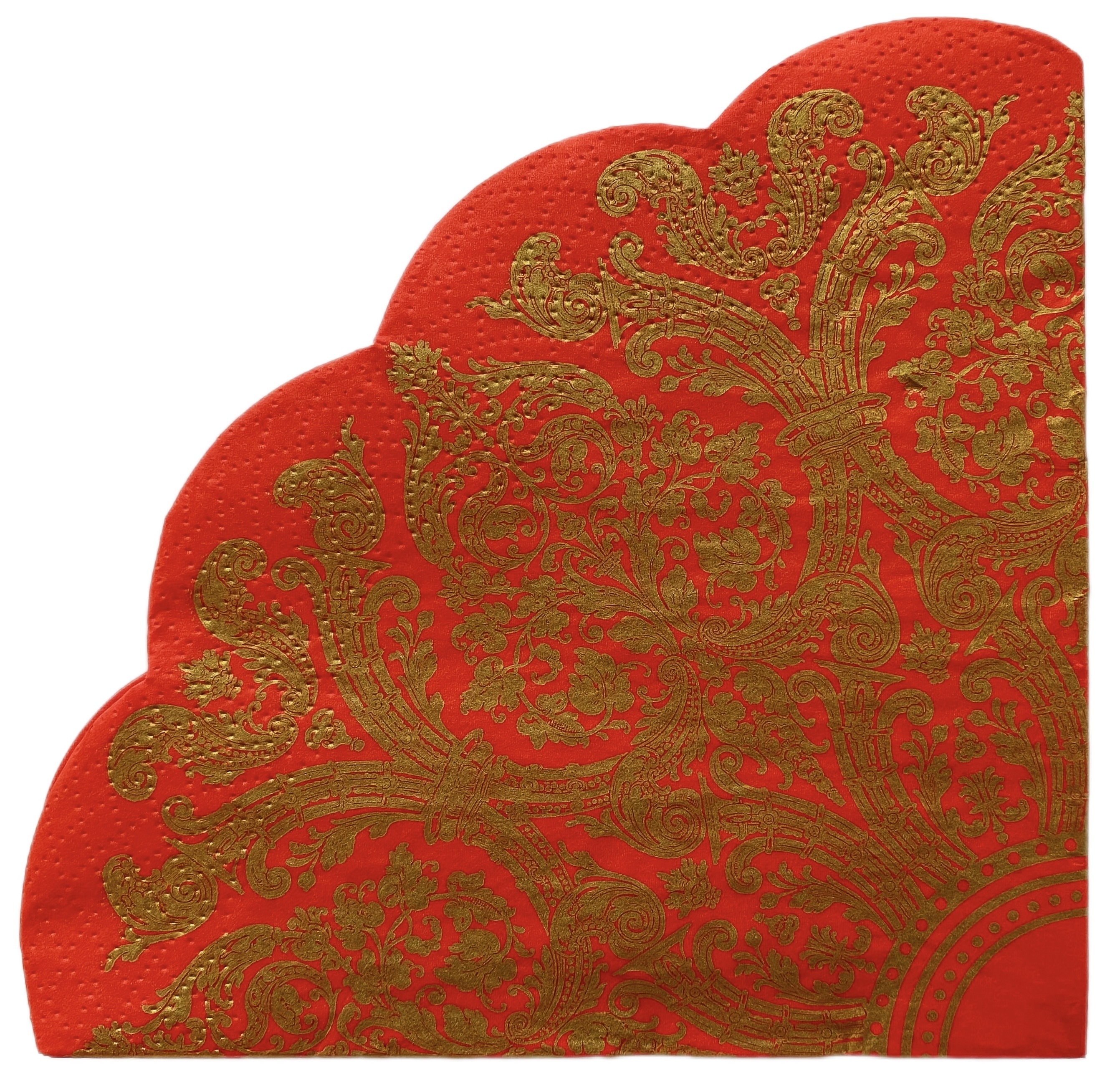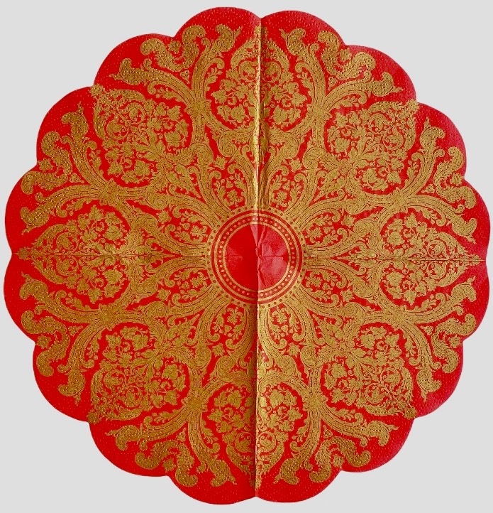 Салфетки бумажные" Золотой орнамент на красном", диаметр 32см., 3 слоя, 2 упаковки по 12штук.