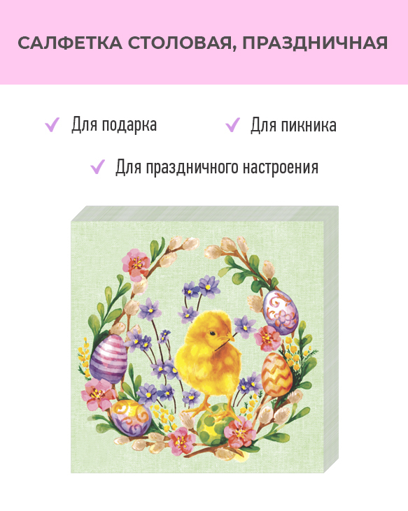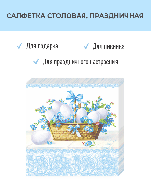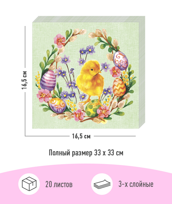 Салфетки праздничные "Корзина на пасху" 33*33, 3хсл, 20шт. Праздник, пикник, Пасха, Вечеринка