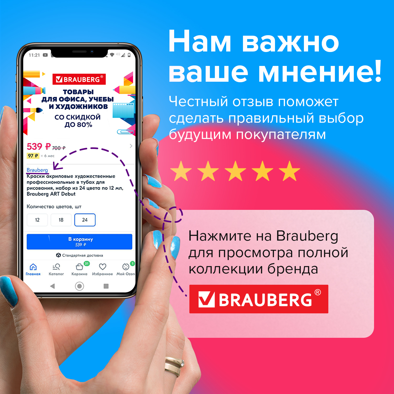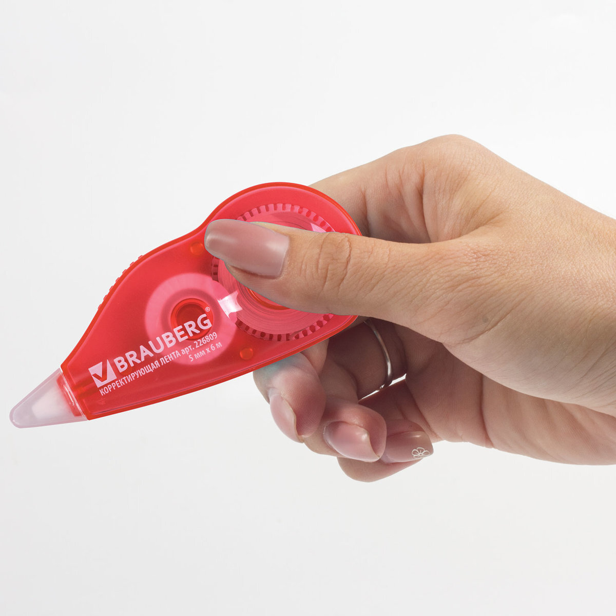 Корректирующая лента Brauberg, 5 мм х 6 м, корпус красный, с подкручиванием, блистер