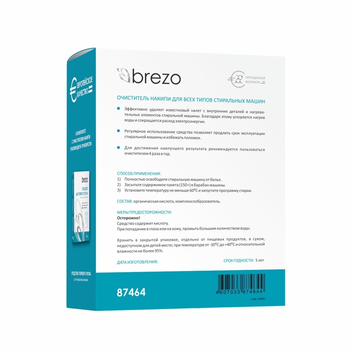 Специальное чистящее для первого запуска стиральной машины BREZO 87467